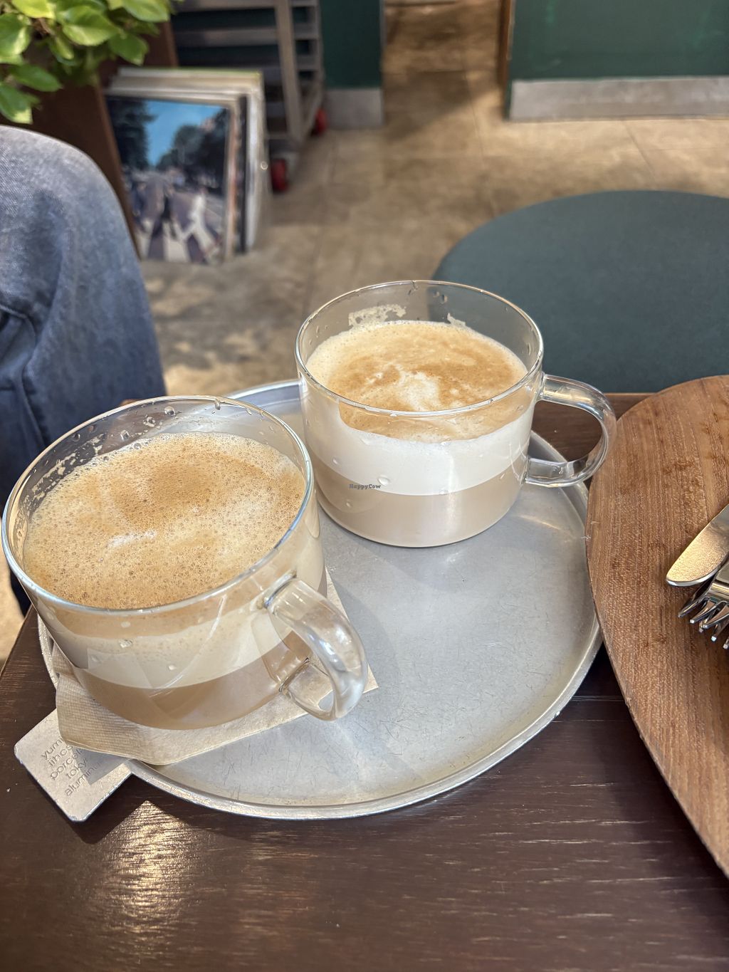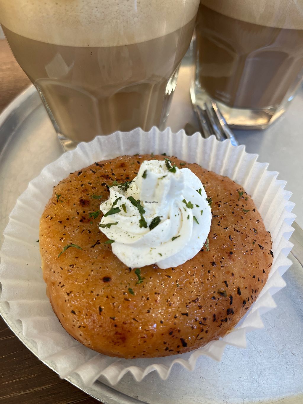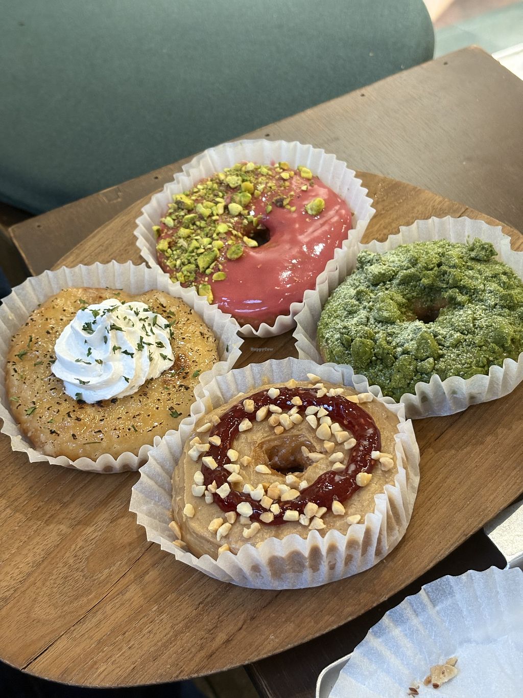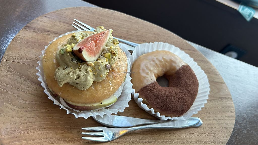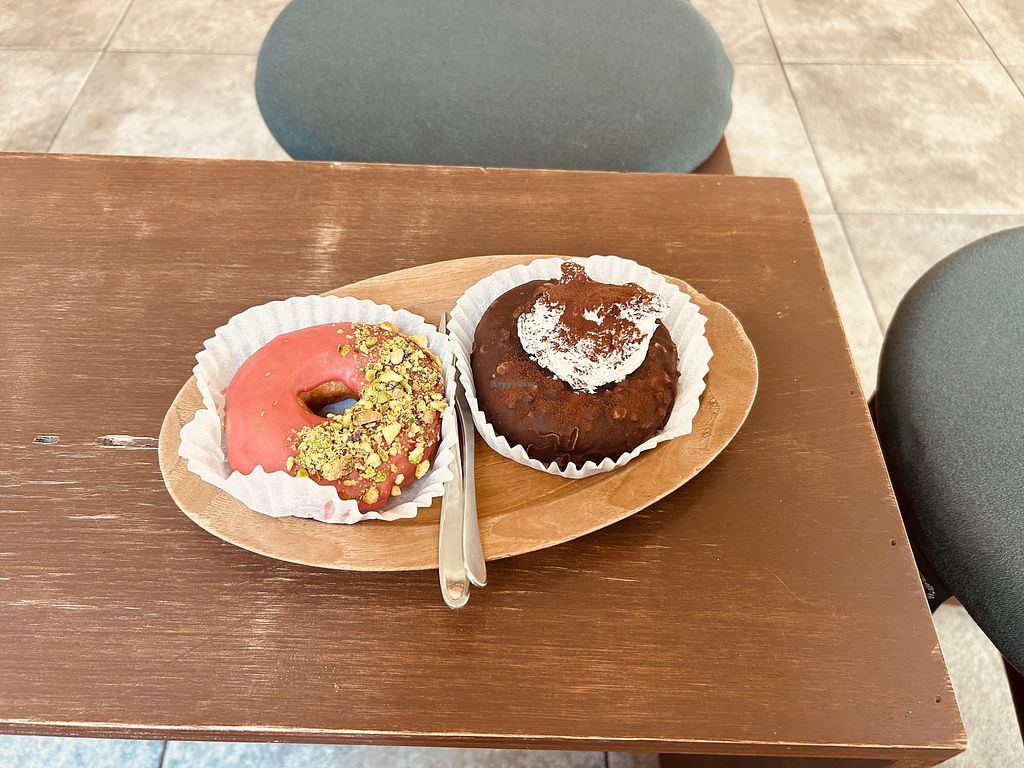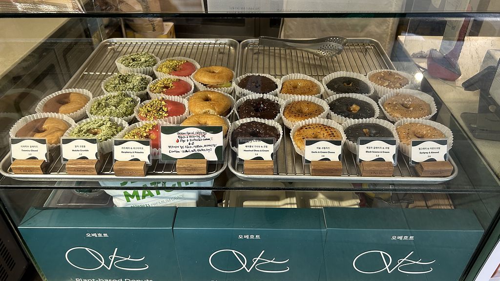 Donuts are my favorite sweet, these were amazing. I’m visiting Seoul on vacation and I came here twice! I asked both times if everything was vegan and they said yes everything is vegan. The only thing that threw me off was when ordering a latte (or a drink in general) they ask if you want regular milk? oat milk or soy milk. I was ordering for my non vegan sister and I asked if the “regular milk” is almond milk bc back in the US when a vegan cafe says “regular milk there default is almond milk” but I always double check. When I asked if it was almond milk she said no they don’t have almond milk. So that’s the only thing that was getting me confused and making me second guess. I don’t see how they would advertise and say fully vegan but then have regular milk. I don’t doubt that the doubts are 100% vegan. I would just be mindful when ordering the drinks. I got the cream mocha latte with oat milk and double checked a third time if I was fully vegan and they confirmed. I still highly recommend👍🏻 just be aware. They speak really good English so it’s easy to communicate.