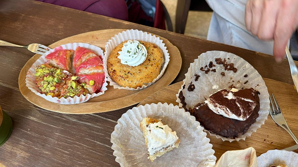 We got the garlic bread and hazelnut/chocolate doughnuts. The garlic one was unique. The chocolate one was good. The staff were friendly but made some strange comments about us having to share a large (clearly sharing) table. Made me think the restaurant may get some badly behaved westerners.