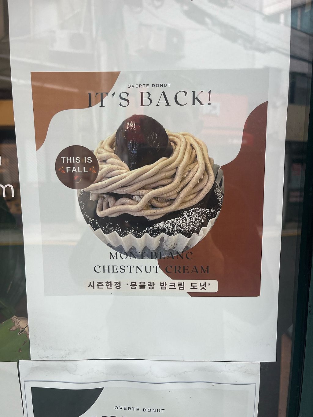 Tried both the matcha donut and the hazelnut chocolate donut, both were delicious! When vegan options are relatively hard to come by in Korea, we really enjoyed this with a coffee.