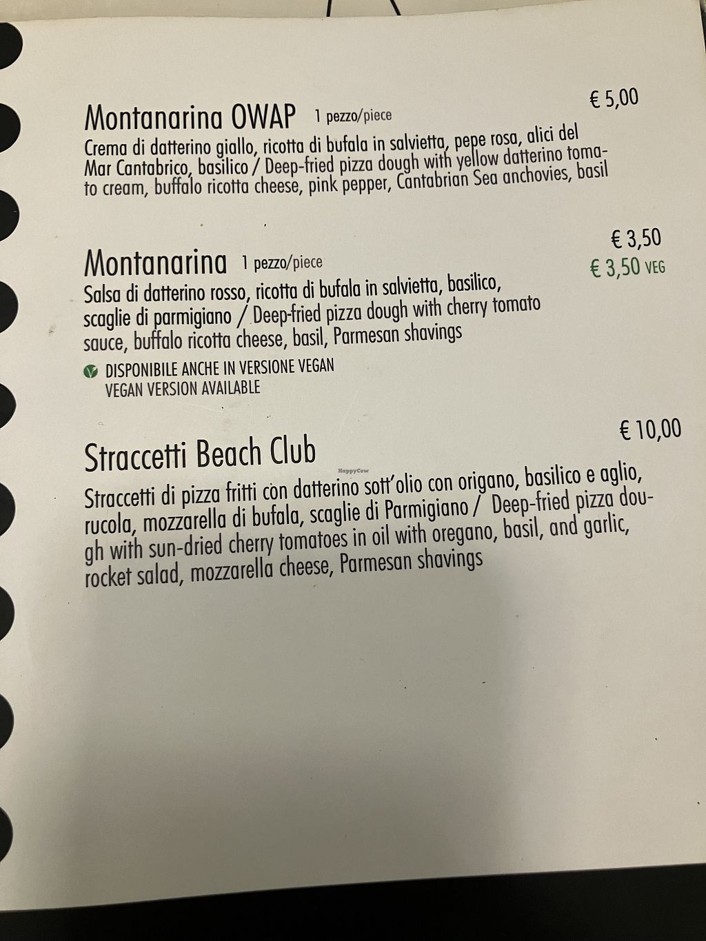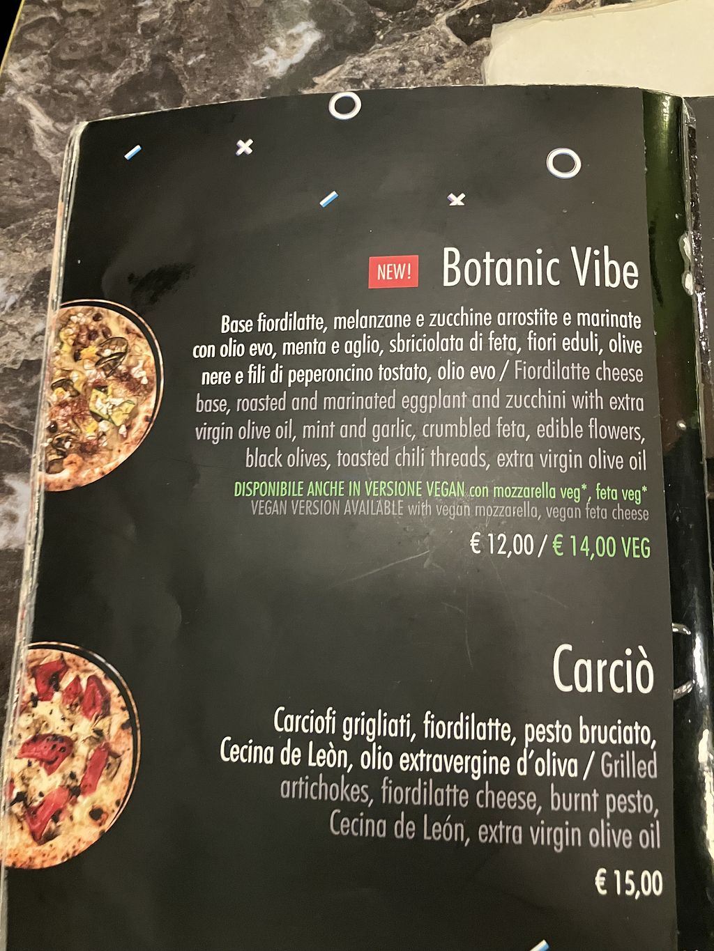 Abbastanza opzioni vegane tra pizza e antipasti, dolci 4 sulla carta all'effettivo 2.