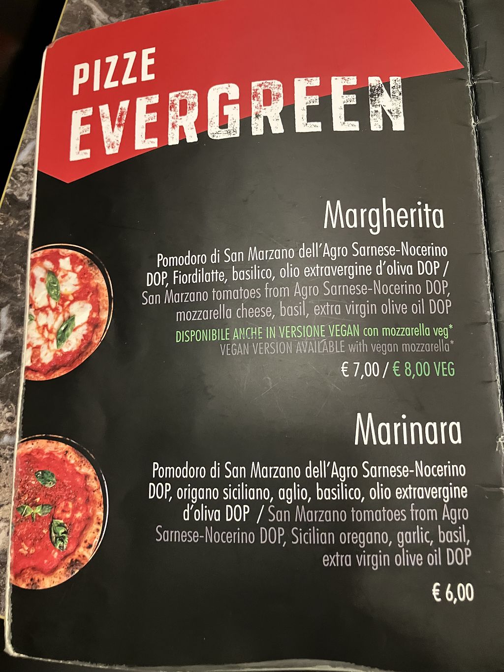 Ci sono varie opzioni di pizze vegane, io ho preso la classica margherita vegana, ed era veramente buona, mi era mancata.