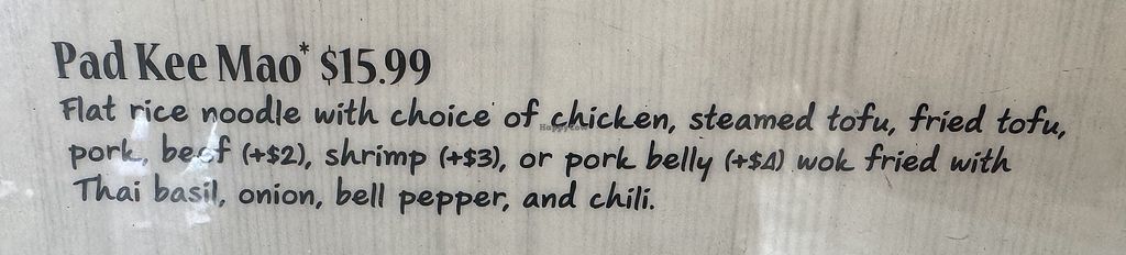 Read moreVery nice people and wonderful food! They have two vegan options - the tofu spring rolls (which I didn’t try), and the Pad Kee Mao (which you can request to be made vegan). Absolutely delicious! 🤤
