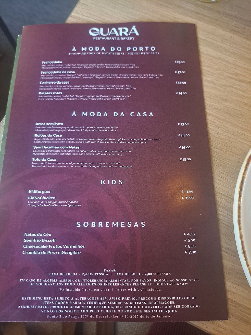 The staff were super friendly and were able to seat us without a reservation. Had a very good appetizer for only 2,90 and the burgers and traditional Portugees food were all fairly priced. The baked goods were still looking and tasting very nice at the end of the day.