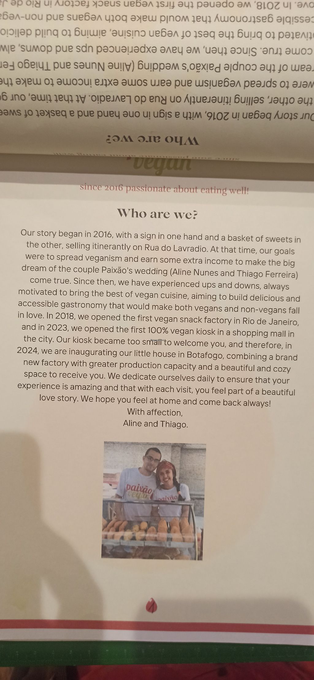 Vegan kiosk offering traditional Brazilian snacks such as coxinhas and pastéis, as well as pizzas, quiches, and various sweets. Relocated from Av. Maracanã, 987 - Tijuca. Open Mon-Sat 12:00pm-8:00pm, Sun 1:00pm-8:00pm.