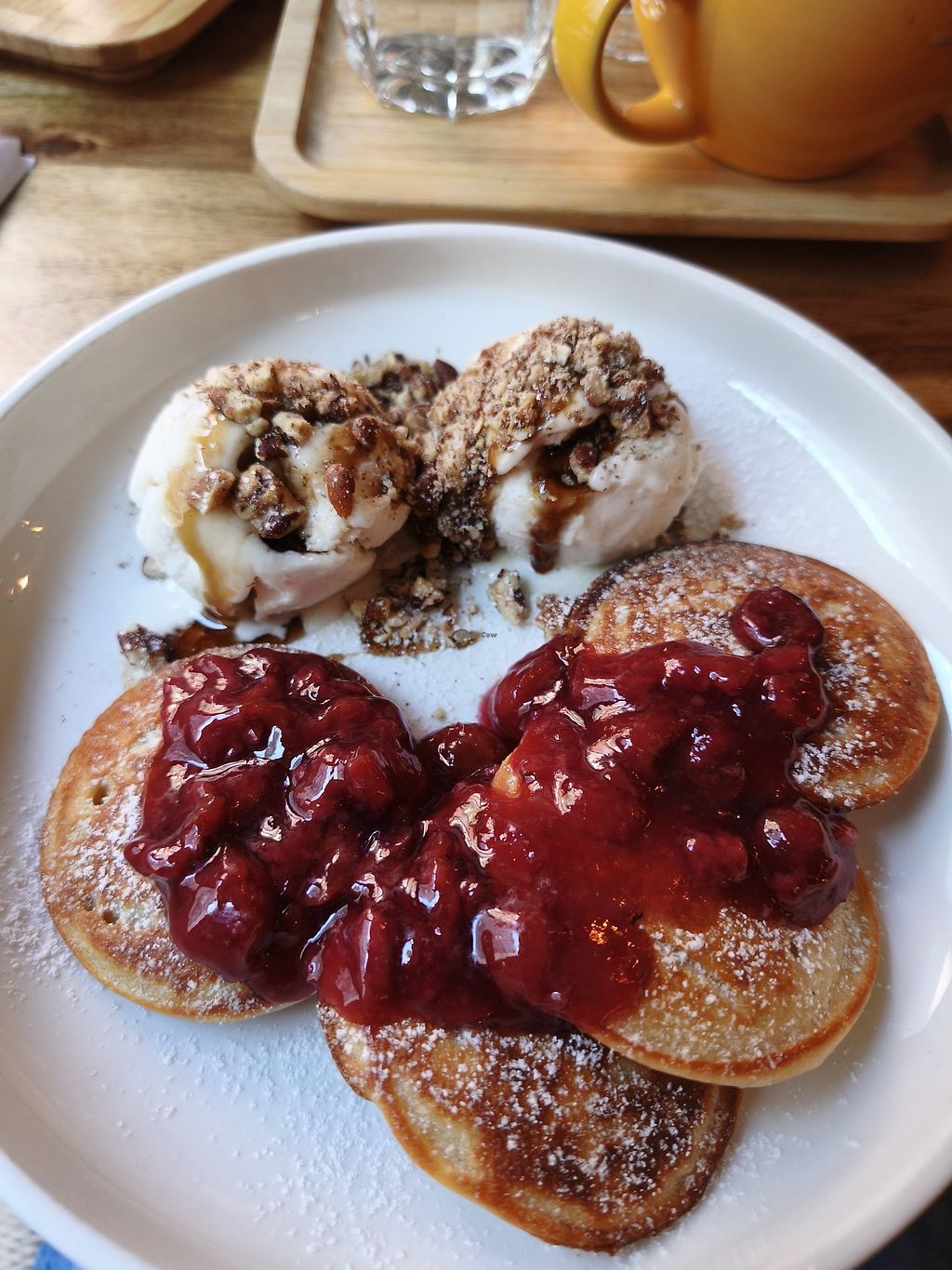 Pancakes were perfect. The porridge was more like a pudding, but nonetheless very tasty.