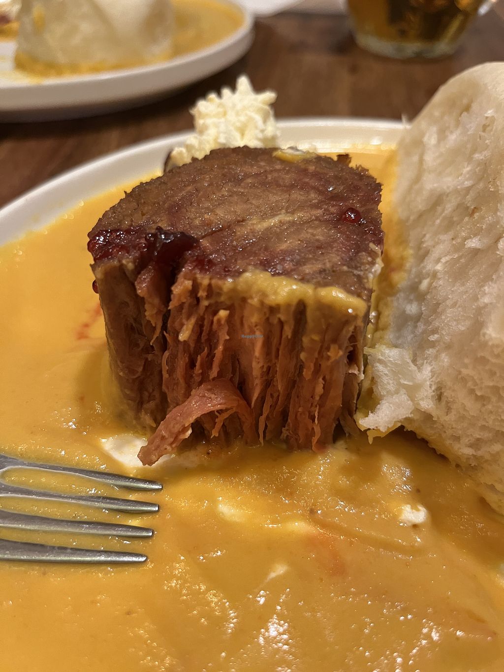 vegan czech traditional „svickova“ sauce with juicy marbles tenderloi…