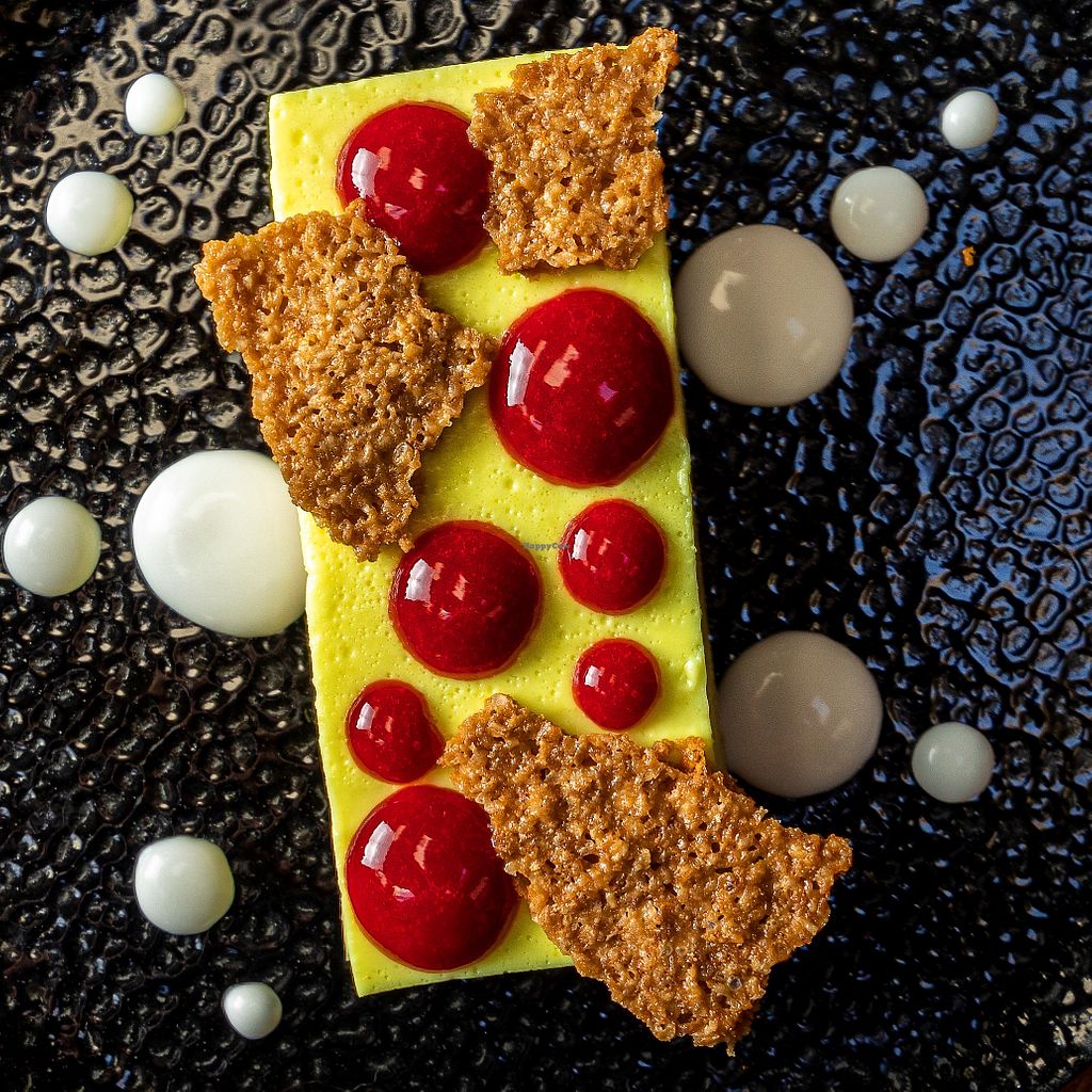 Gluten free vegan brownies with red fruits coulis and creamy ice cream