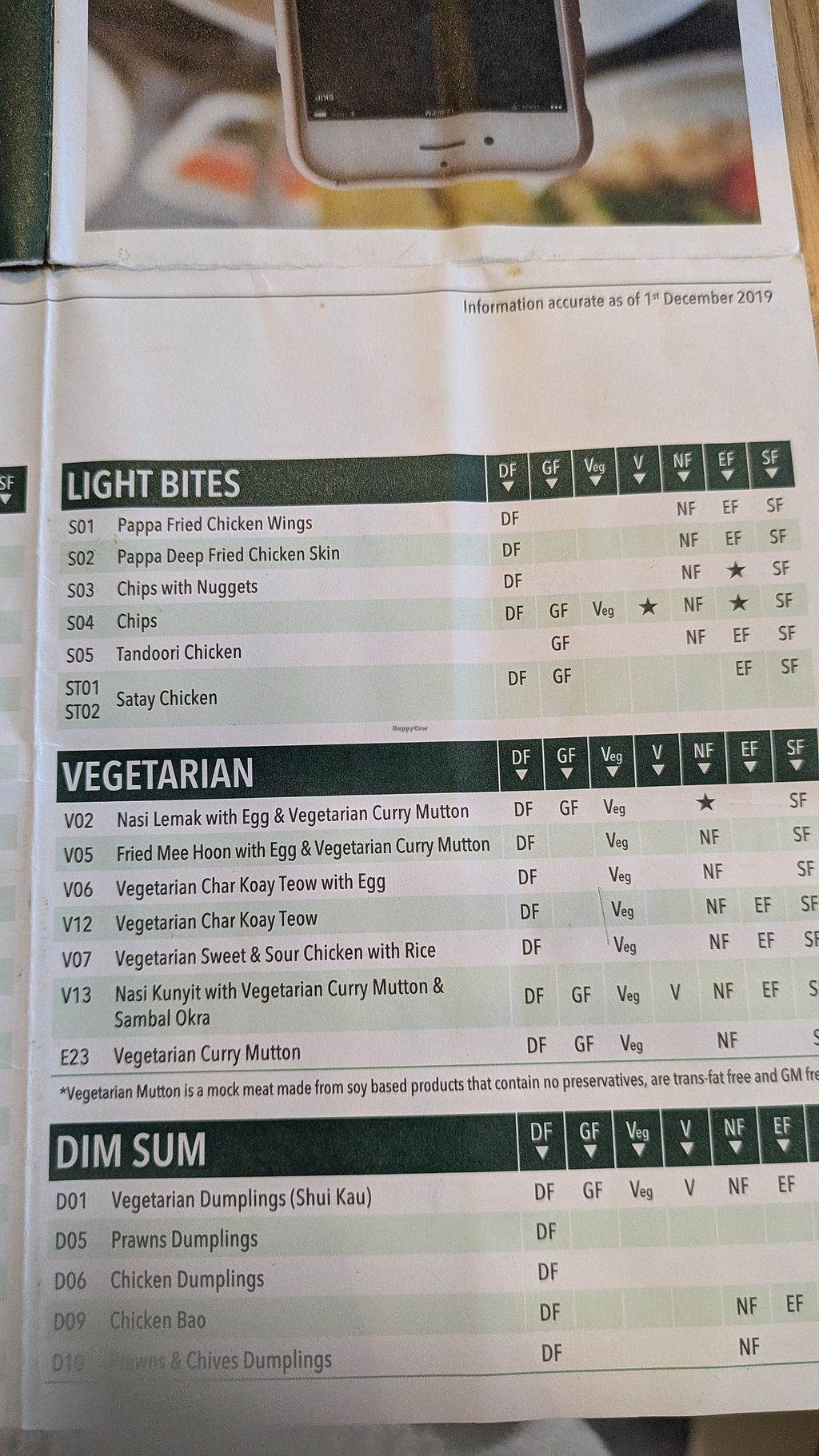 I remember eating here in August 2022, but some options weren't clearly marked as vegan, since some vegetarian options didn't have the egg/dairy description... I'll try going back sometime soon to verify the description, but their website still has mixed information (like "does not contain egg", but no info on dairy), and the allergen menu only lists the dumplings and sambal okra as vegan food (other than the side dishes)... Even the egg-free adn dairy-free options in the vegetarian sections are not listed as vegan... That's why I didn't add the venue originally... Does anyone have any extra info on this? Source https://papparich.it-paradise.com.au/data/pdf/Allergen%20Brochure.pdf