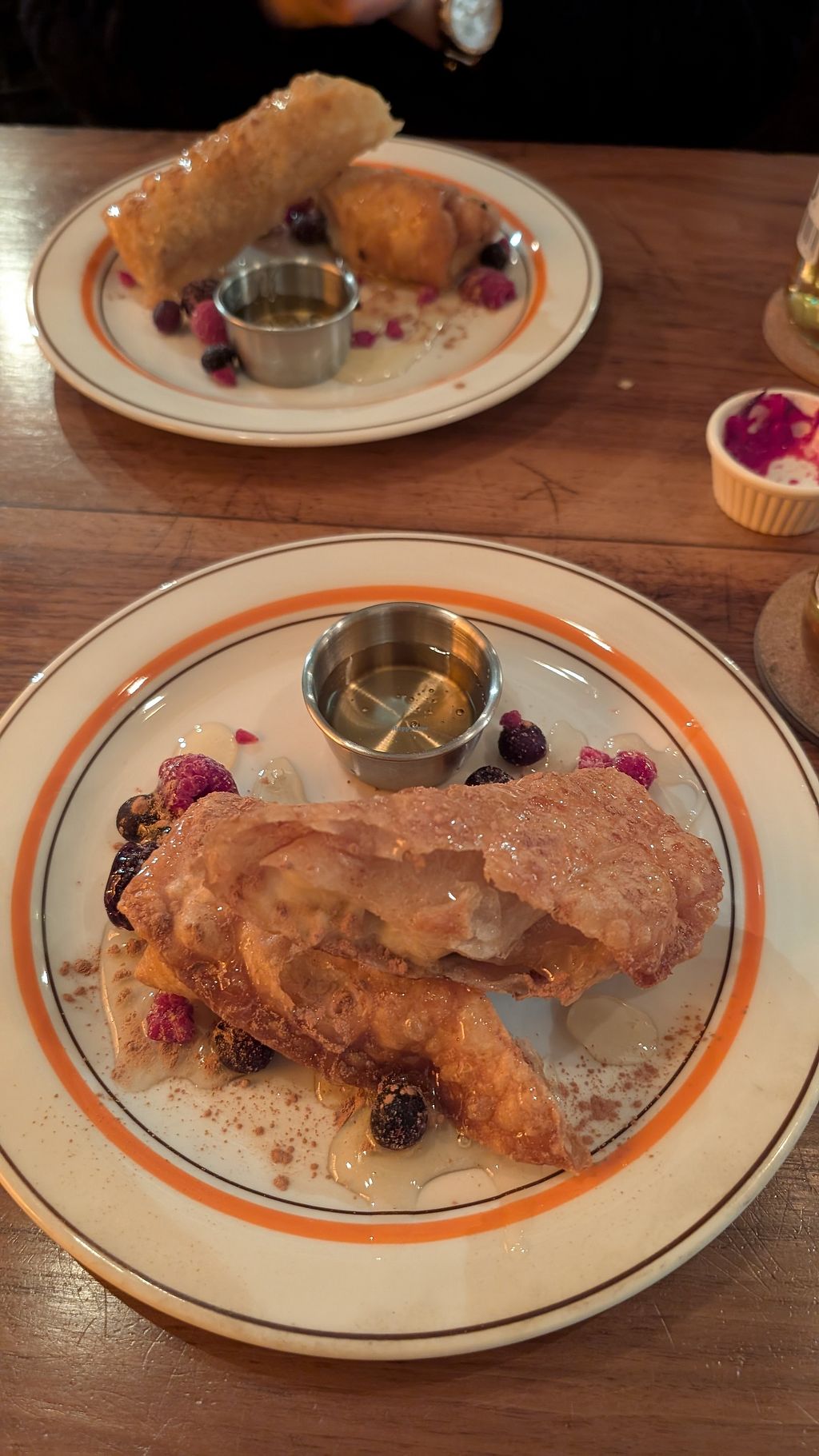 I had the chilli beans and hummus quesadillas, the falafel tacos plate and a banana chimichanga and everything was very flavourful and filling. Relaxed atmosphere and cool staff.