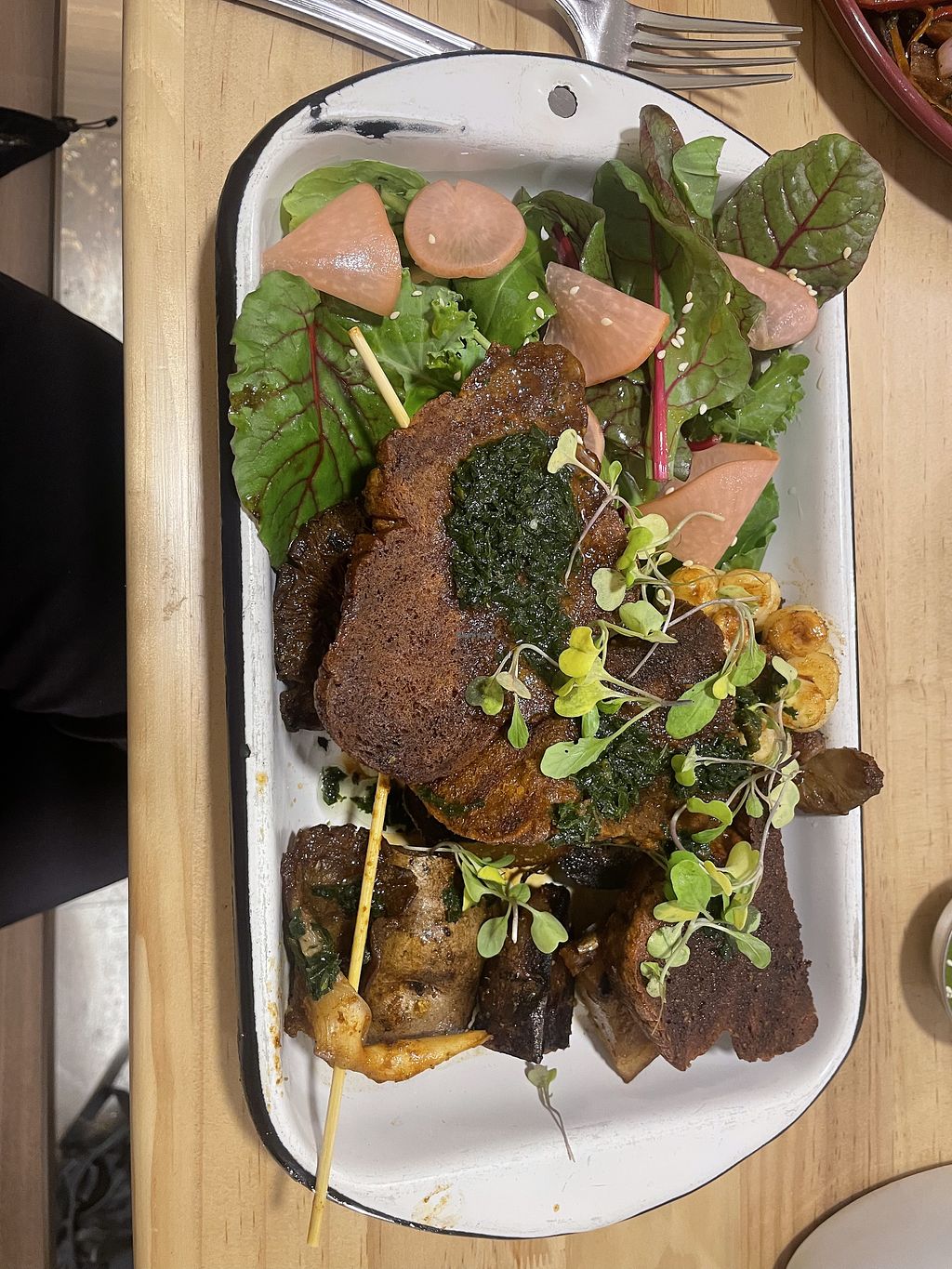 Very spacious restaurant with a cool vibe. We ordered the parrilla and it was huge, enough for two people to share. For dessert, the tres leches cake was a dream come true! Big slice, sweet, moist, absolutely delicious! An amazing meal and since we shared everything it was not expensive.