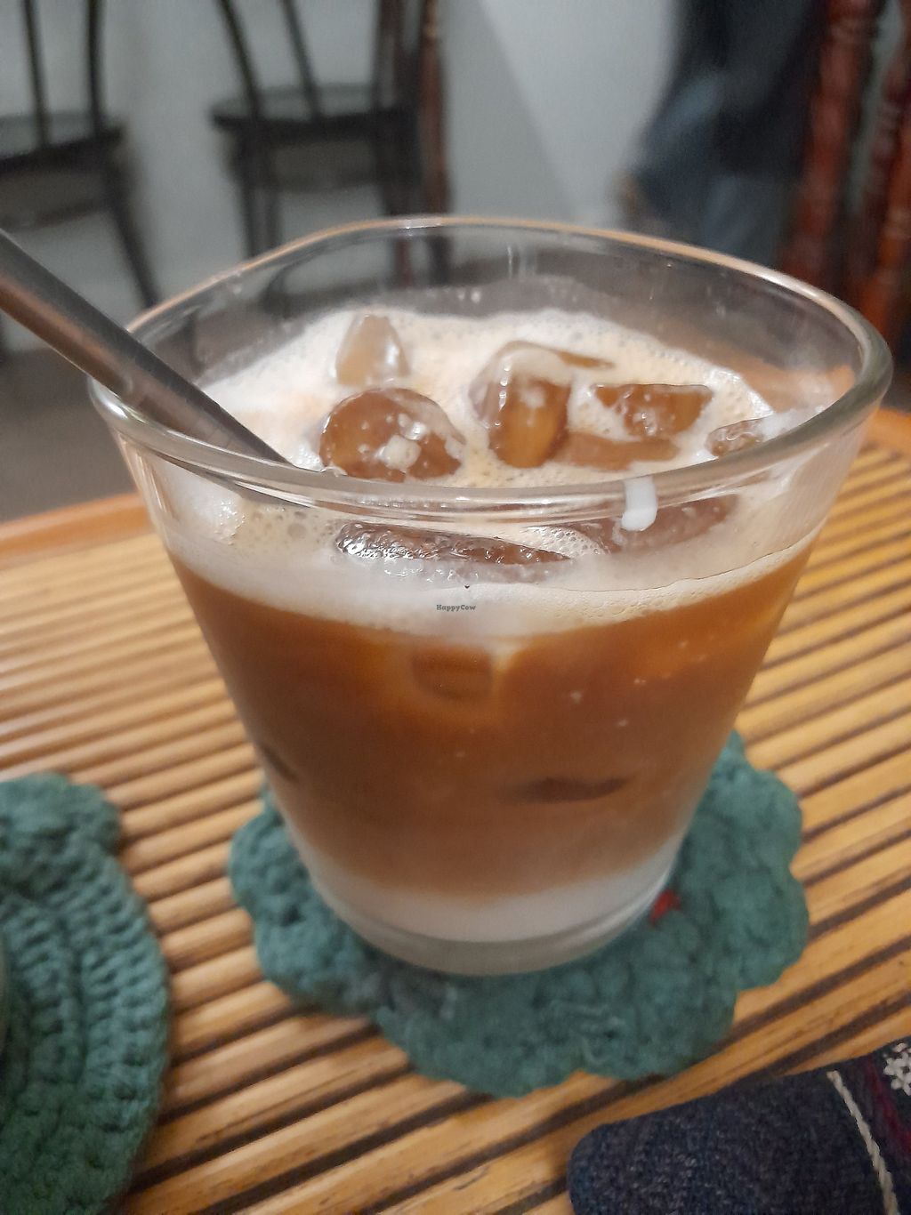 Cool little place with chilled cats and barking dogs. Great vegan nut milk coffees. Nice young staff. Located in a cool looking hem. Comfortable seating. Air conditioned to escape Saigon's heat. Coffees were strong and delicious. Good pricing at only around 45,000 Dong.