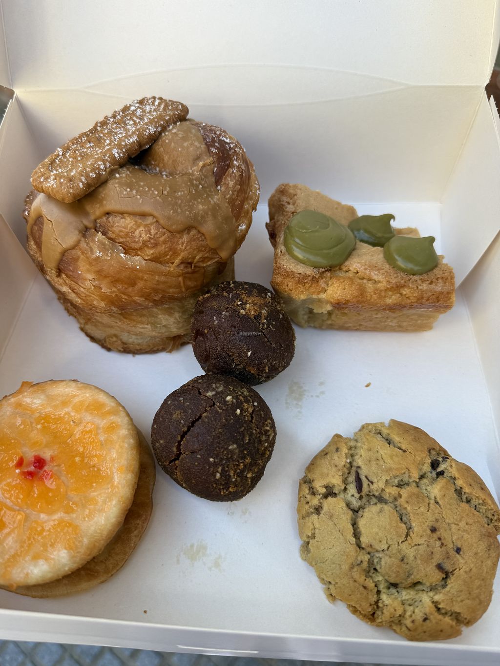 Fully vegan pastry shop since 2024, very small with no seating but great choices! Croissant was massive, brownie was delicious. Staff also knew what contained nuts and what didn’t.