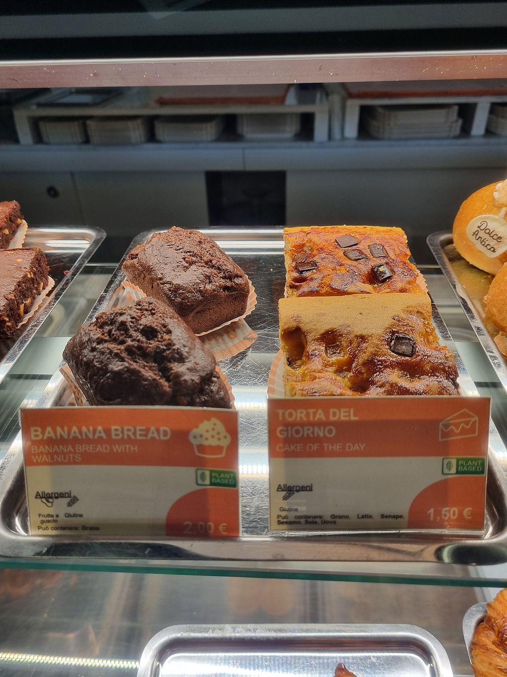 Ci sono molte opzioni 100% vegetali (croissant, banana bread, plumcake, cinnamon roll, sfoglia, brownie, ...).