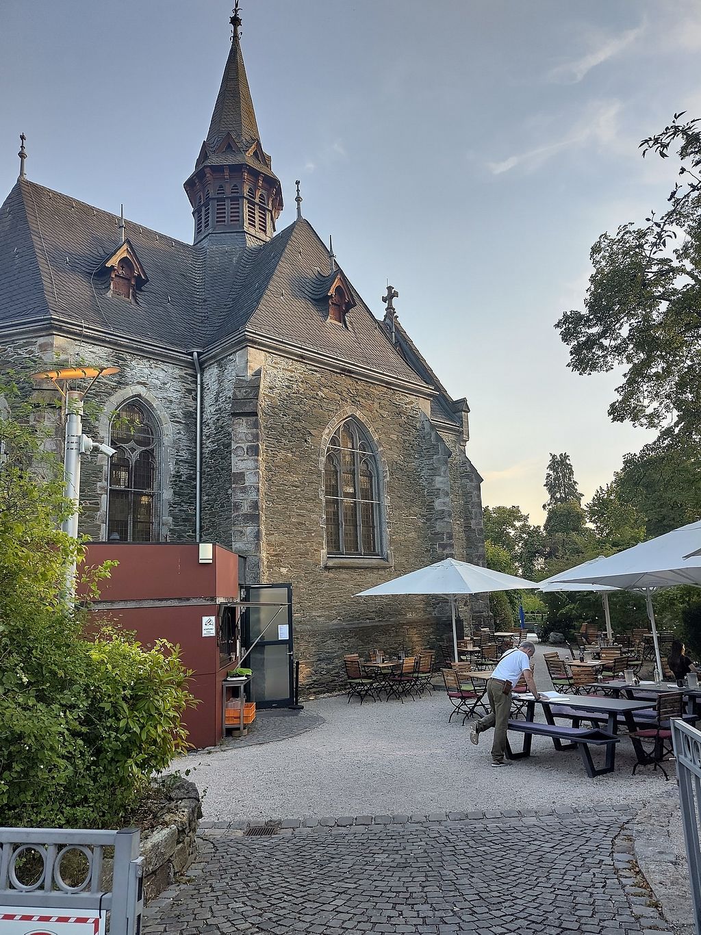 Serves meat, vegan options available. Restaurant and events venue in an old chapel. During the summer month also has a beer garden. The menu changes seasonally. Vegan choices are labeled and could include falafel, ravioli, risotto, moussaka, and salads. Open Wed-Sat 17:00-23:00, Sun 12:00-22:00. Closed Mon & Tue.
