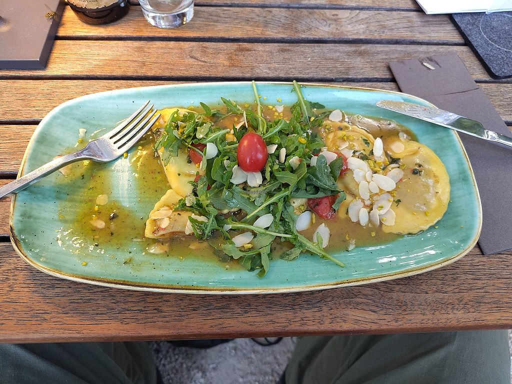 Die veganen hausgemachten Ravioli waren sehr lecker und der Kaiserschmarrn-Nachtisch auch😋.