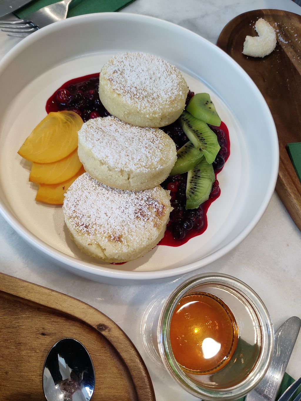 Wirklich ästhetisches Essen, aber das Ambiente ist sehr ungemütlich und das Café wirklich schmutzig, weswegen man sich sehr unwohl fühlt.