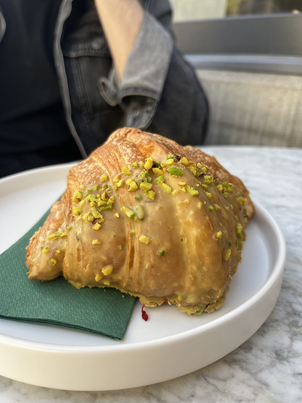 We had croissants and coffee. The dough of the croissants is *chef's kiss*. We ordered pistachio and haselnut, both fillings were creamy and delicious.