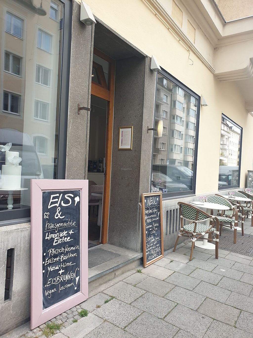 Fully vegan patisserie/dessert shop and cafe. Also does cake design. Serves neat cakes, macarons and pastries, in addition to breakfasts such as avocado bread, pancakes or granola. Also has ice cream from locally based ice cream manufacturer Eisbrunnen. NOTE: Entrance through Georgenstrasse, first corner on the left in front of number 118. Open Mon-Wed 09:00-17:00, Fri 09:00-17:00, Sat-Sun 10:00-17:00. Closed Thu.