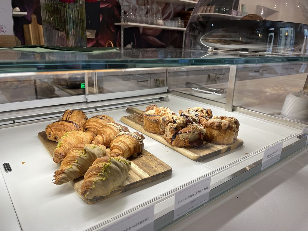 Auf der Suche nach einem süßen Snack sind wir hier vorbeigekommen und nach dem betreten des Ladens war ich schon etwas geschockt von den Preisen. Für ein wirklich kleines Dessert werden hier Preise von 8€ - 9€ verlangt. Klar die Sachen sehen lecker aus, aber nach zwei Bissen sind die halt auch weg. Wahrscheinlich bin ich einfach die falsche Zielgruppe für so ein fancy Geschäft. Positiv hervorzuheben ist das Haselnuss Croissant für 3,50€, welches sehr lecker und mit Creme gefüllt ist.