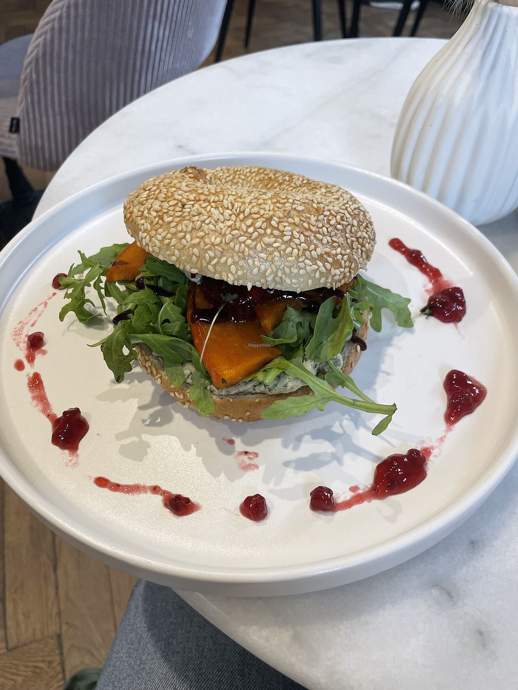 I was in the Café and ate a hearty bagel with pumpkin and chashew Camembert - so delicious!