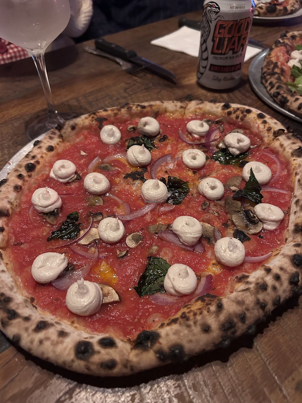 Everything about this place is amazing. The wood fired pizza HOMEMADE cashew ricotta is vegan heaven