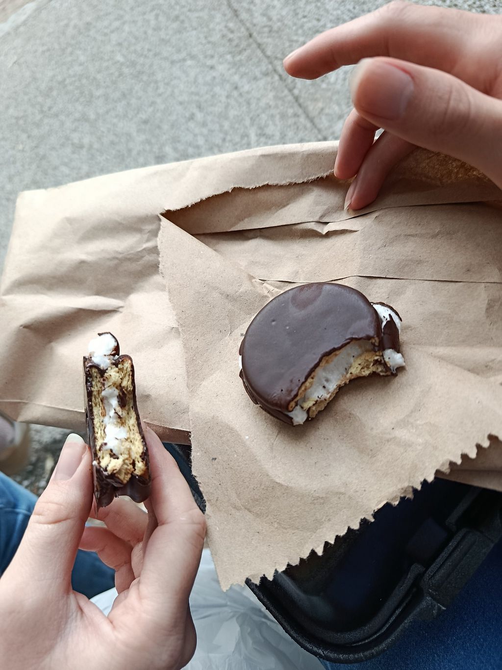 We had a Fish taco, Fish and Chips, and Smores. It didn't taste fully like fish, but was good, the chips (fries) were great. Smores were a bit small but chocolate covered and also yum.