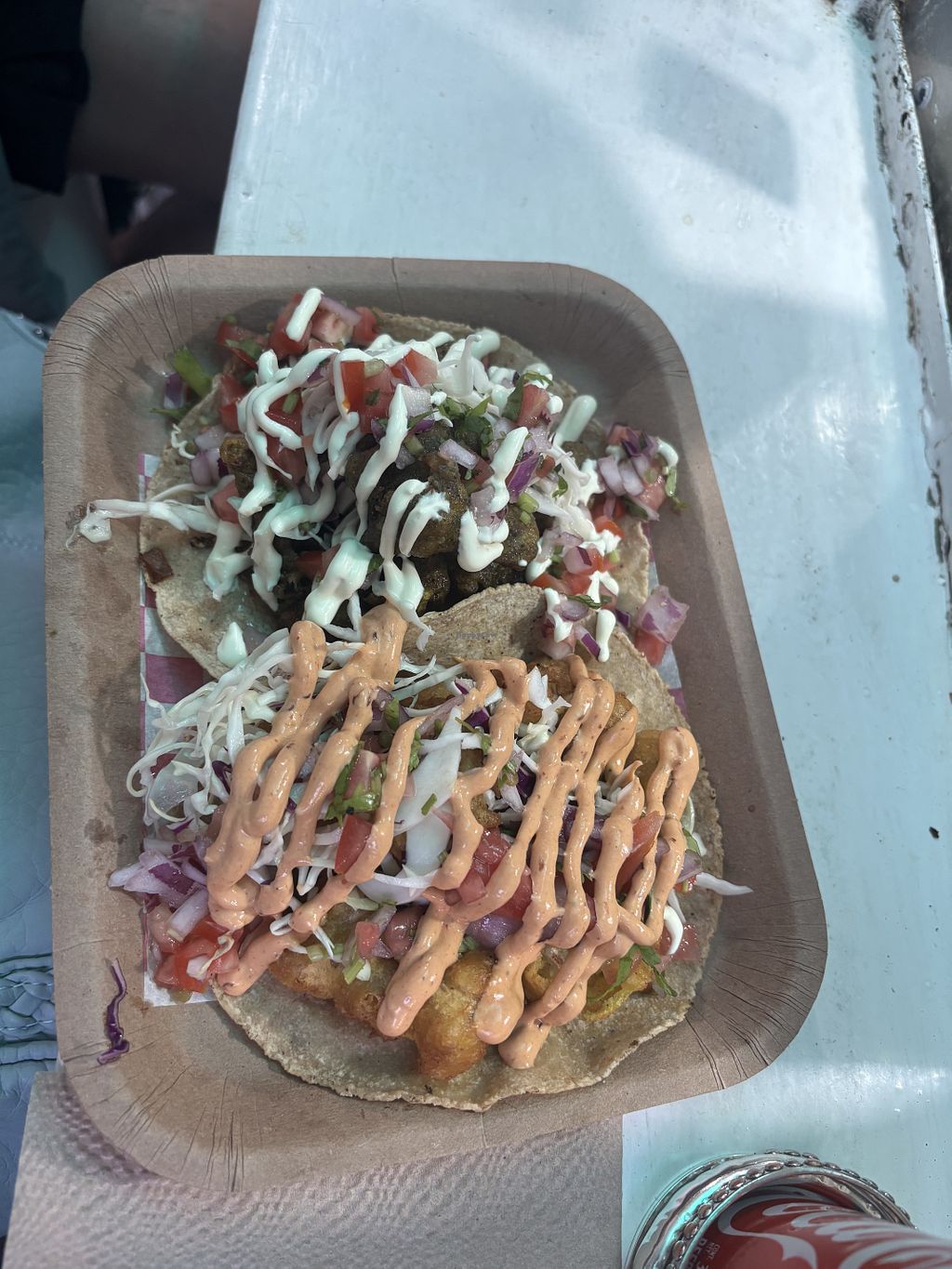We were not planning on eating at this place but then as we were walking by the street we noticed it was busy and smelled delicious so we tried at least one fish taco and it was really good. Definitely coming back to try the other options.