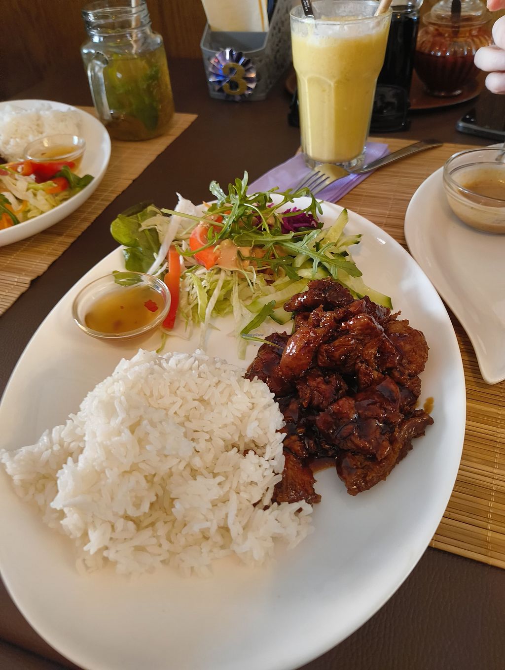 Das Essen war sehr lecker die Portionen Groß und das Personal war sehr süß. Die Speisekarte ist komplet traditionell Vegan was natürlich auch immer Positiv ist. Außerdem sehr lecker sind die Getränke. Alle Hauptgerichte kosten 10€ was aufjedenfall ein sehr guter Preis ist. Allein beim Ambiente muss man leider ein kleinen minus Punkt geben was aber durch die anderen Positiven Sachen ausgeglichen wird. Wir kommen auf jeden Fall wieder.