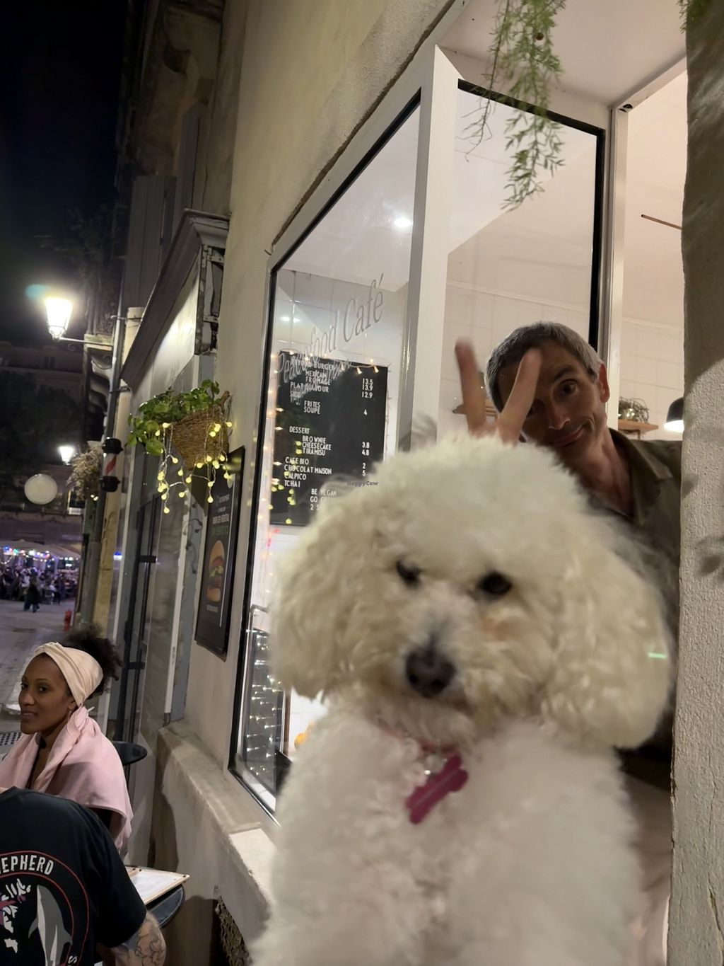 Le gérant et très sympa et accepte les chiens en terrasse.