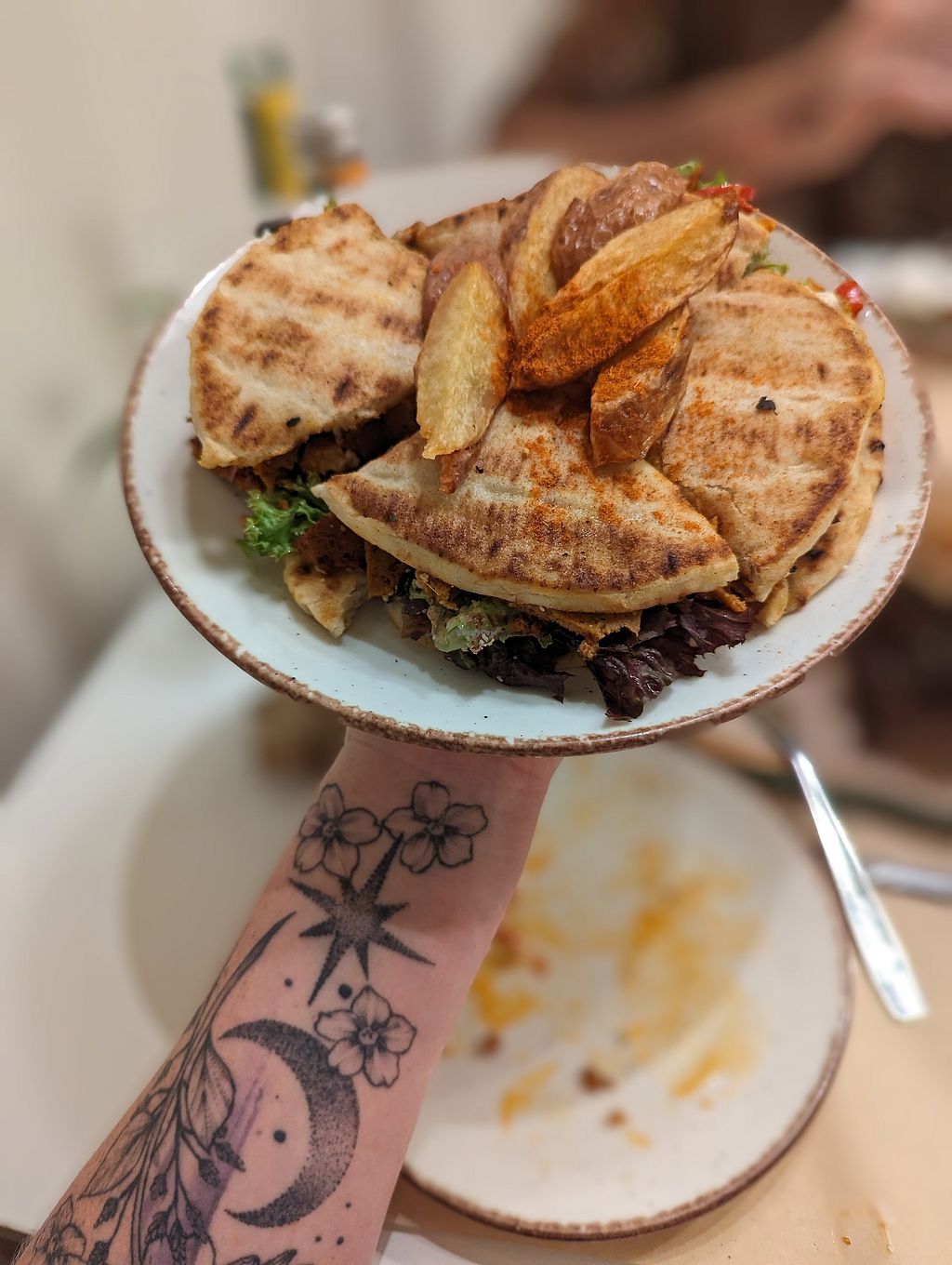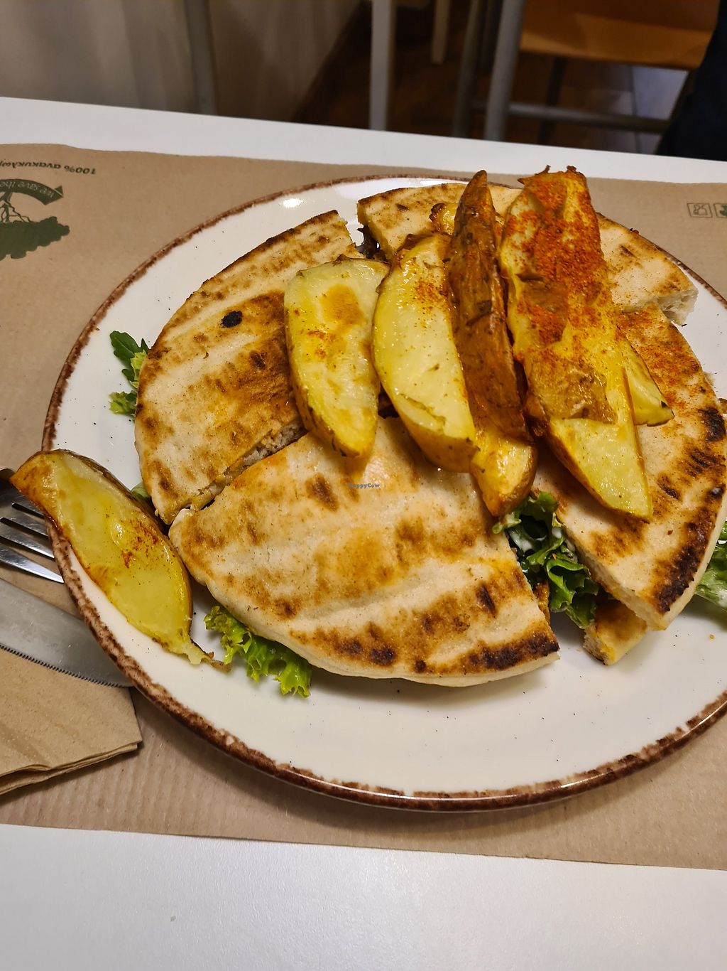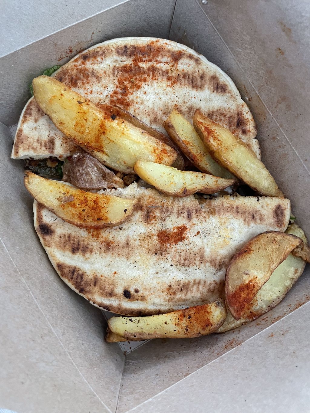 Quinoa Lover with fries, Tortillas Buenas and orange juice