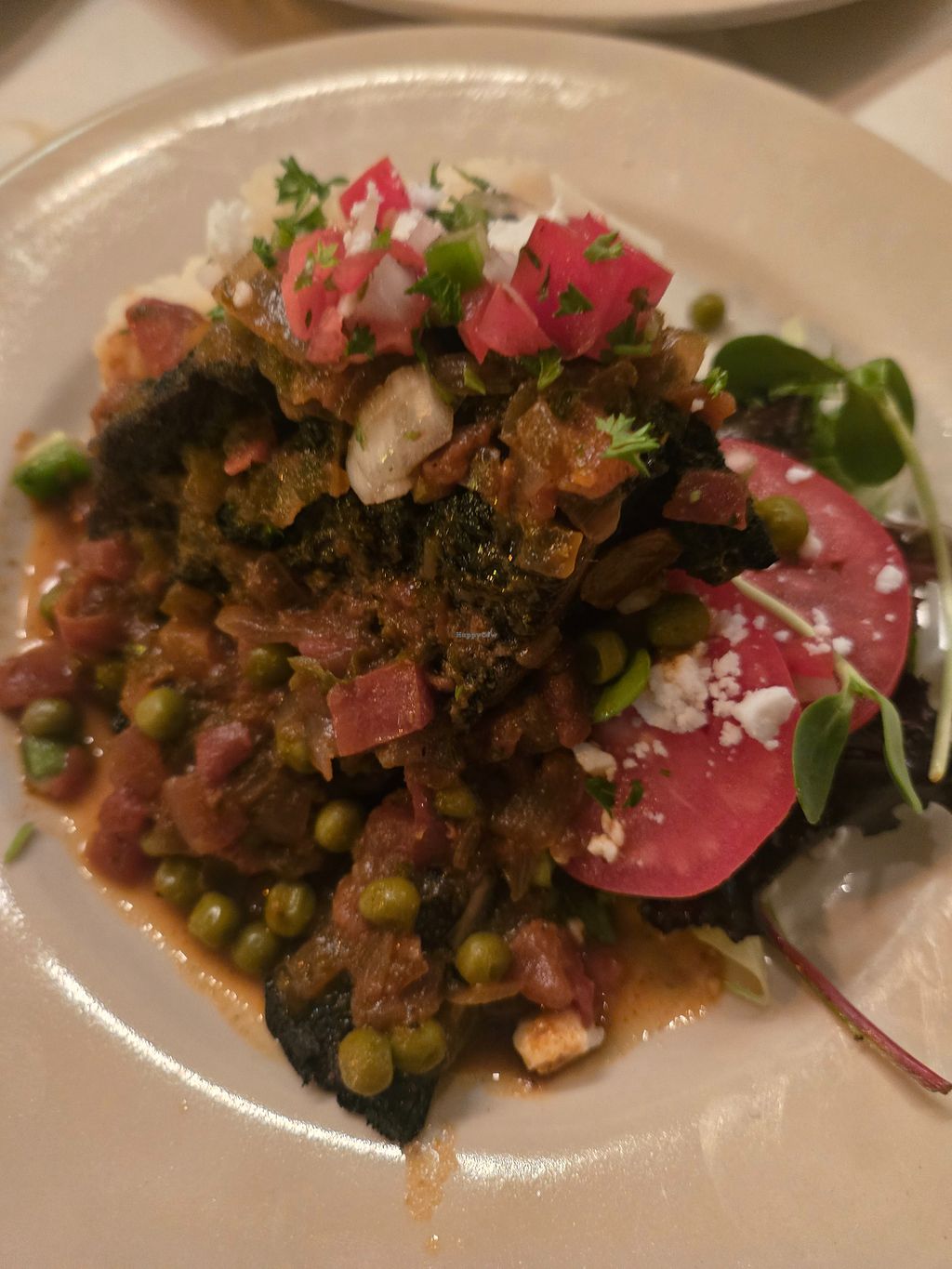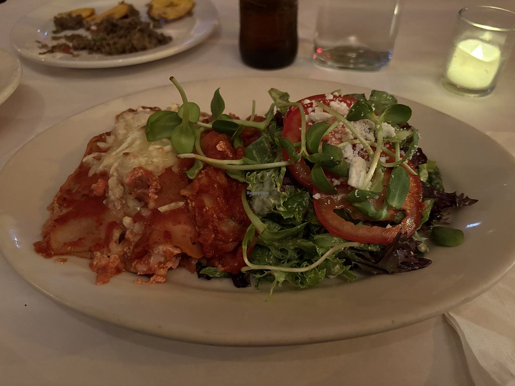 I didn’t realize that this place is entirely vegan! I came for the flamenco dancing and live music. I will be back! Very friendly servers, cozy intimate interior, and incredible vegan food and beverages. We enjoyed the lasagna, empanadas, cheesecake and brownie with ice cream.