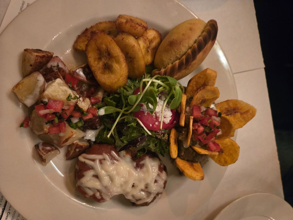 We went to their Valentine’s dinner and show. It was price fixed menu and everything was delicious and a lot of food. They served an appetizer plate with an array of empanadas, plantains and other wonderful items off their regular menu. The main course was a choice of 3. Two were gluten free. The lasagna was the best flavor. The deserts were chocolate cake or cheesecake. Both were really good but I think the cheesecake took it. While we ate the musicians started. They played authentic Bolivian music and had performers as well. They invited everyone in the restaurant to get up and dance. It was such a different and fun experience. I’d love to go back and experience their regular menu. The place has a warm, welcoming and fun vibe. Do yourself a favor and experience the delicious healthy vegan food, the friendly staff and unique entertainment.