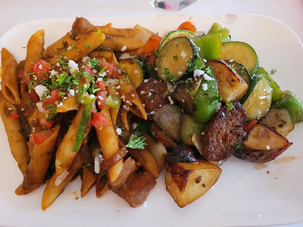 I liked the spicy pasta… it was delicious. The plant based sausage was one of the best I have ever had and the fresh veggies and potatoes were tasty. The salad that came with the empanada was delicious too. The empanada was nice. It is in a nice location next to Washington Square also. I would go here again.