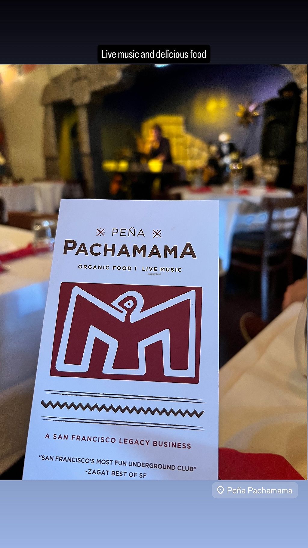 Located in a historic speakeasy in San Francisco's old Latin Quarter, 'Peña' means a circle of people coming together and 'Pachamama' means Mother Earth. In early 2023, the restaurant was certified as a Legacy Business in the City of San Francisco in recognition of its long history of service to the community and for being a valuable cultural asset and a part of the 'Soul of the City'. Peña Pachamama is the only vegan restaurant that is a Legacy Business in San Francisco. The restaurant serves organic vegan South American cuisine with live performances after dinner on weekends. The menu is half raw and half cooked, and mostly gluten-free. Uses all organic produce and only extra virgin olive oil or organic coconut oil in dishes. The kitchen makes vegan ice cream and raw kale chips in-house. Serves a selection of cocktails, wines, and sangria. Visit web calendar for schedule of live entertainment events. Open Mon-Thu 4:30pm-9:00pm, Fri-Sat 4:30pm-10:30pm. Closed Sun.
