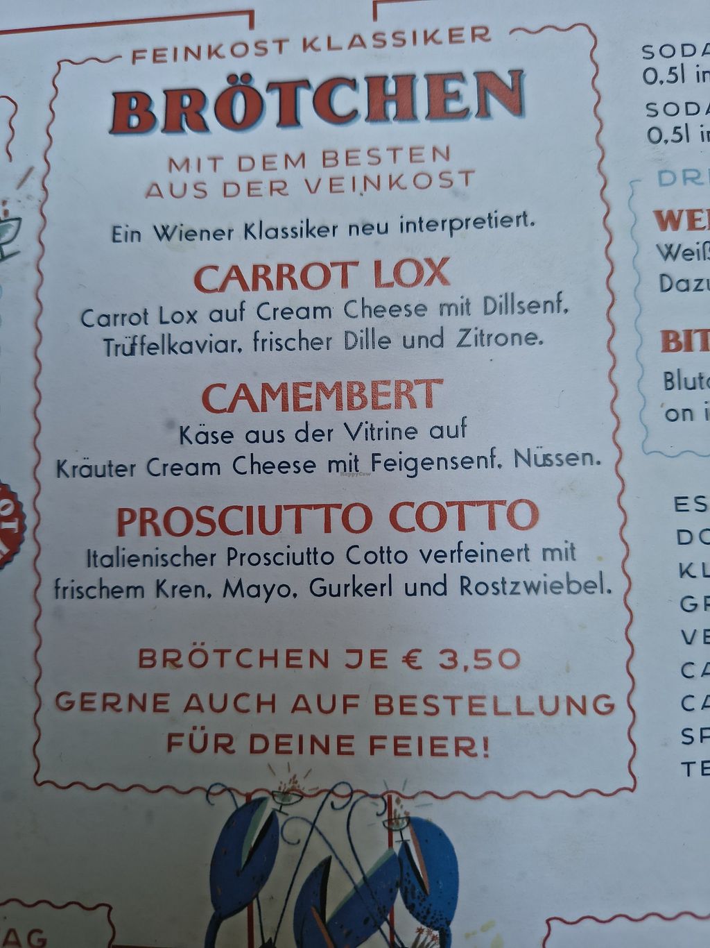 Wow the small plates were great, I tried all 3 options. The carrot lox is incredible, the Camembert delicious, and the prosciutto really tasty (as long as you like mustard/pickles). Not extremely expensive like other places in Vienna, and very friendly staff.
