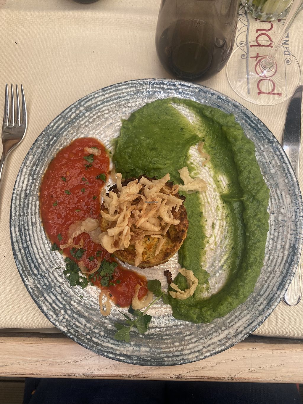Serves meat, vegan options available. Restaurant that offers a selection of local and Mediterranean dishes. Vegan options include barley risotto, chickpea soup, and a burger. Companion animal friendly. Open Mon 12:00-22:30, Wed-Sun 12:00-22:30.