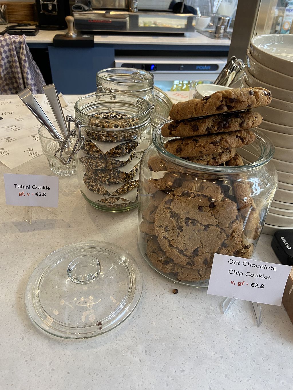I had an oat milk cappuccino and a peanutbutter bar and it was amazing. You can look right into the kitchen/bakery in the back and it looks very clean and tidy. Also gluten-free options.