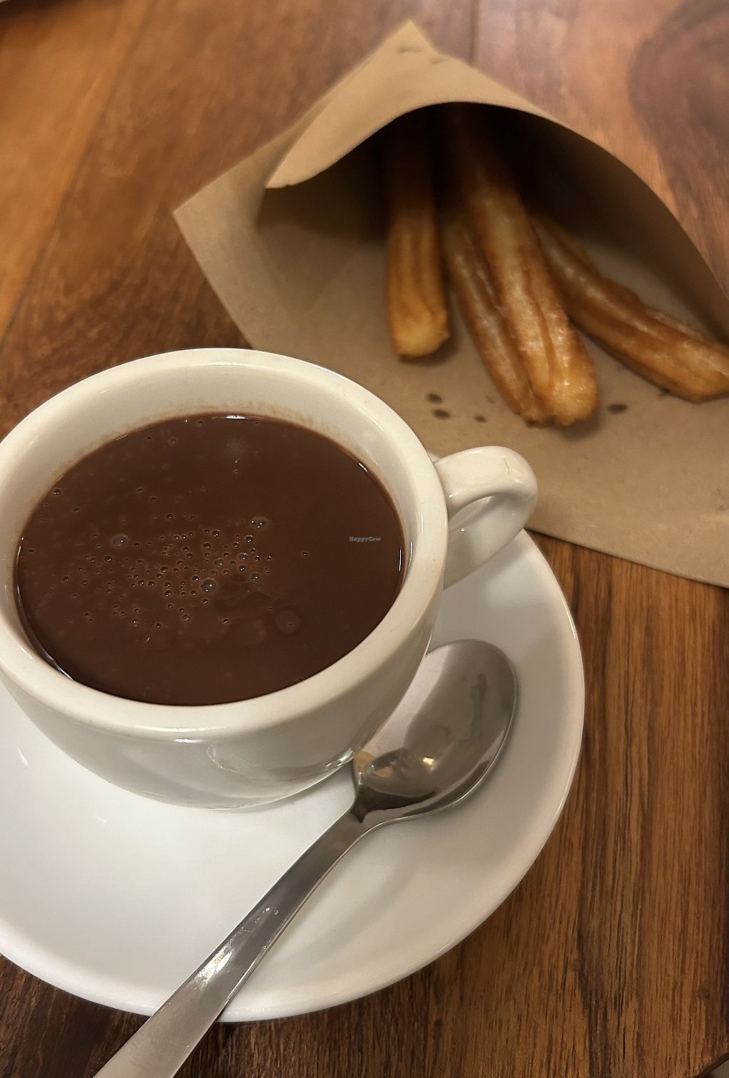 Went here for the churros and ended up ordering the hot chocolate as well (made with soy milk). The churros are great and crunchy, the hot choc is thick and amazingly done. I dipped the churros in the hot chocolate 👌🏼❤️