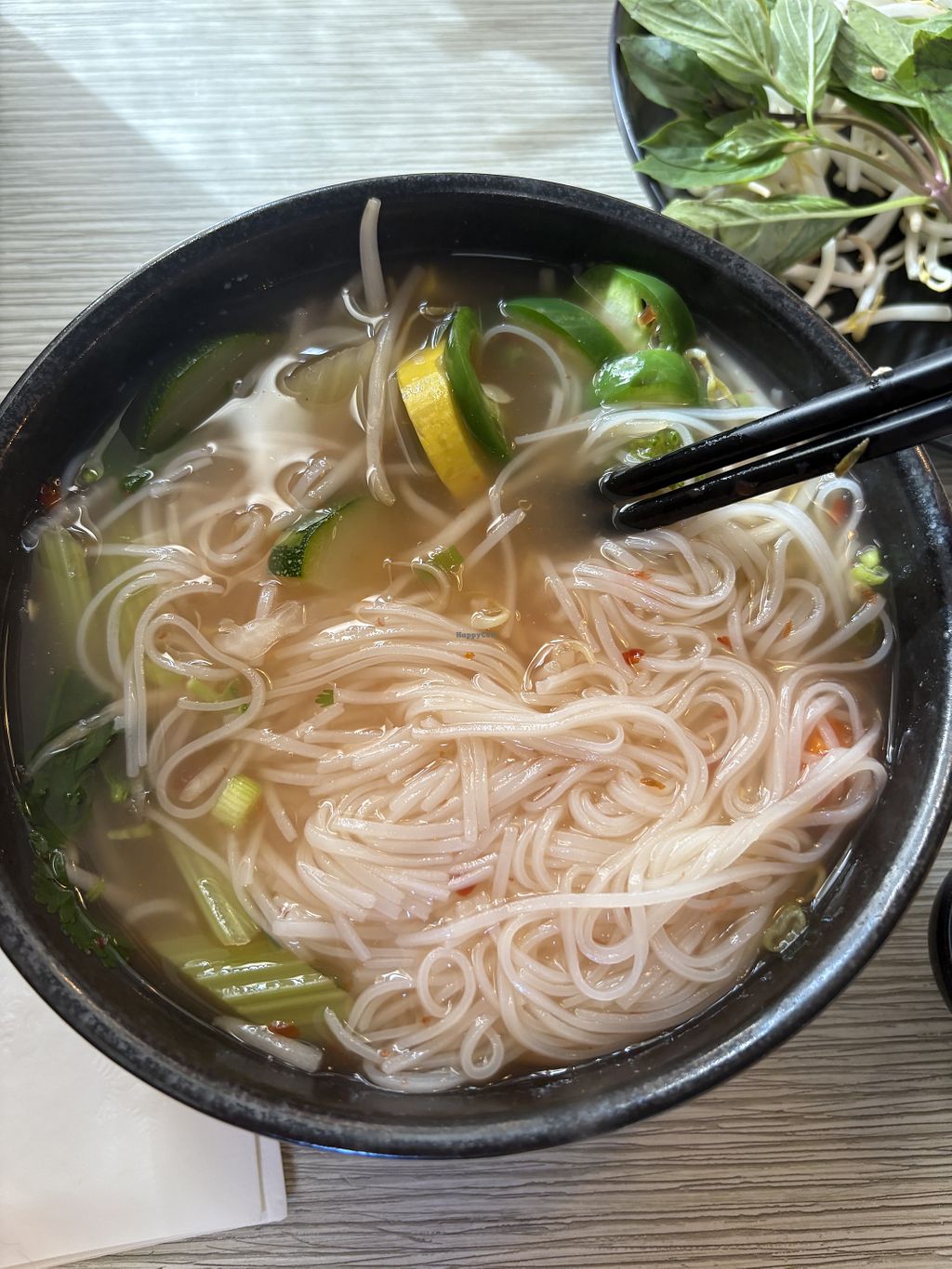 The plaxe is small and the waiters were attentive. The food is good, I ordered the vegan veggie Pho and it was delicious while still being a basic dish.