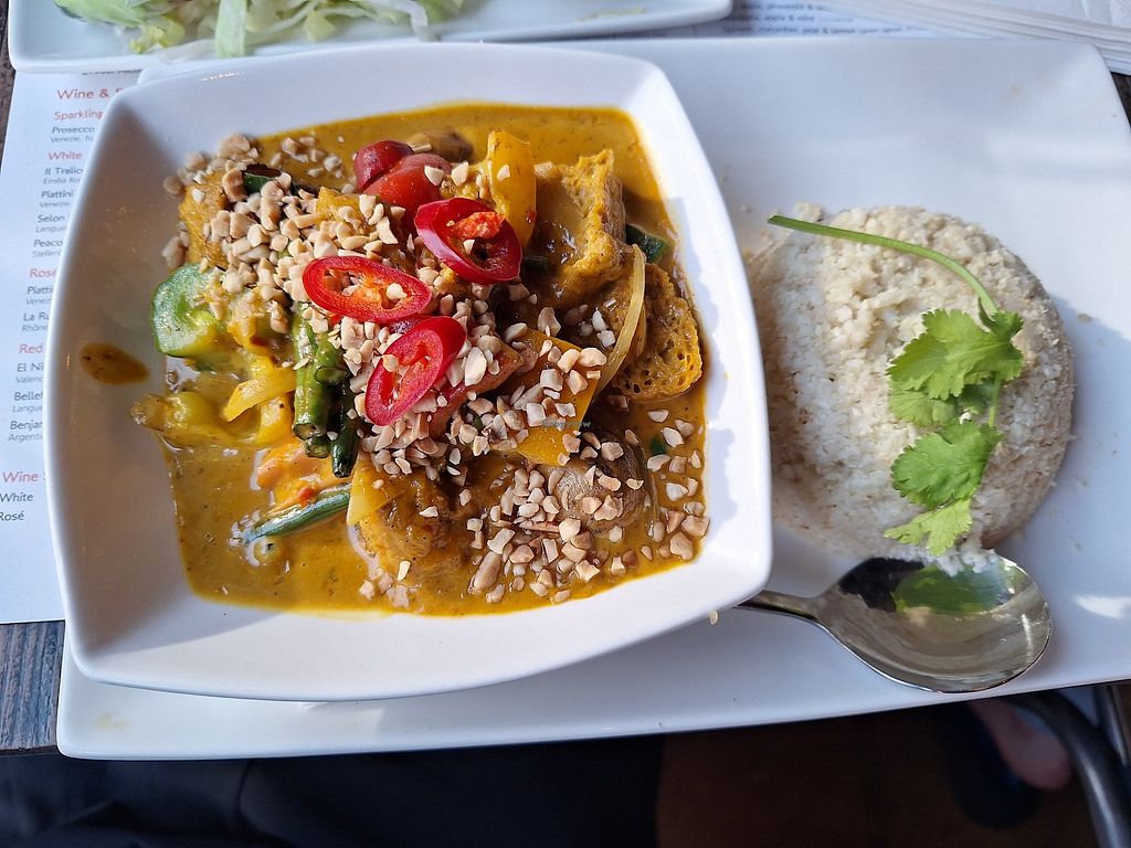 A modern restaurant with a very pleasant and spacious interior. I had the hot and spicy pho noodle soup with tofu and mushrooms and we also ordered a classic curry with This Isn’t Chicken. The curry was excellent whilst the soup was good but not memorable.