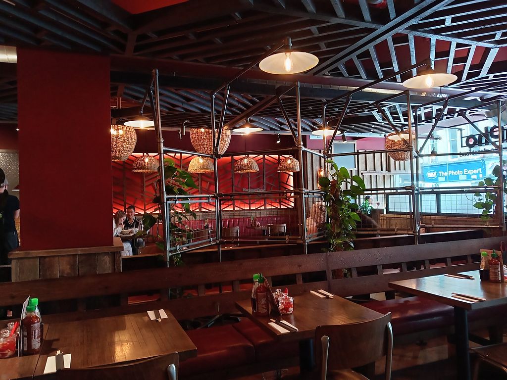 Serves meat, vegan options available. Modern Vietnamese chain offering clearly labeled vegan dishes that include noodle soups, curries, rice dishes, summer rolls and salads. Dog friendly. Open Mon-Sun 12:00-22:00.