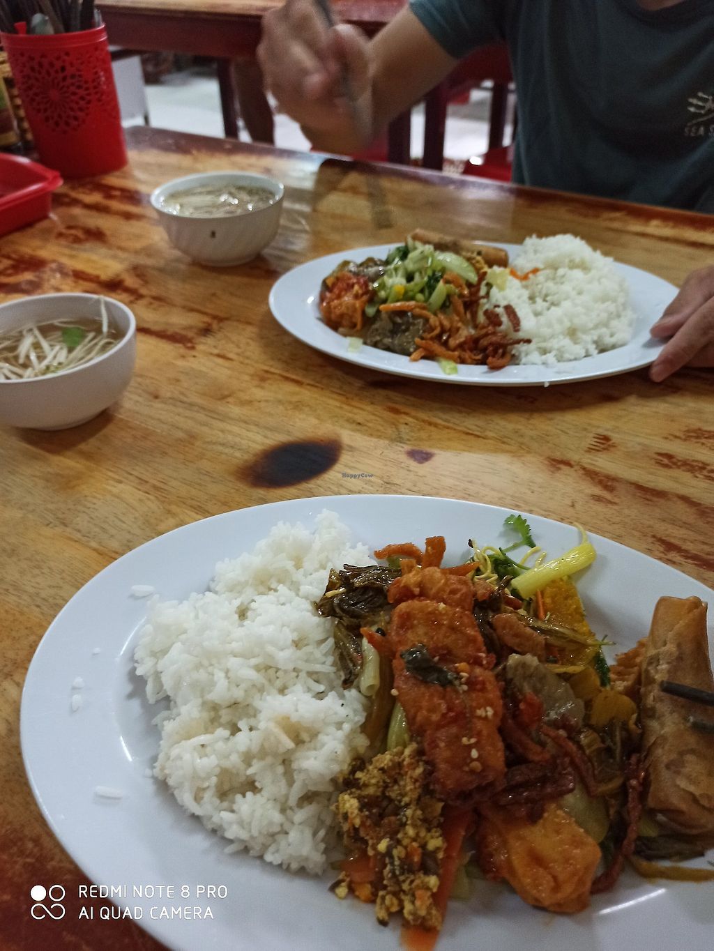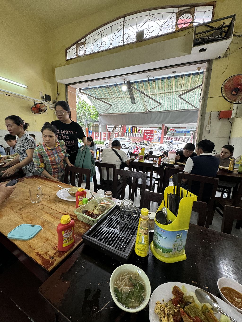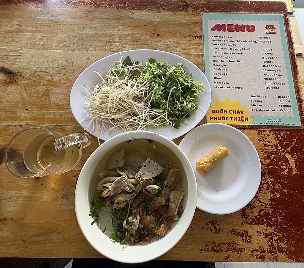 We had the classic"com dia" (plate of steam rice with a buffet of mock meat and veggies also served with a soup) that only costed us 20k each, very cheap compared to some places we had it. The food was really good. No tourists, only locals. Offered different type of foods but didn't have any left cause we came late