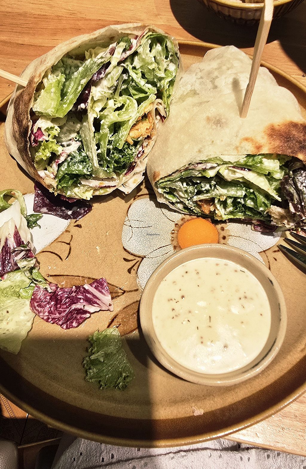 The tofu Caesar wrap was another standout dish. The tofu was seasoned beautifully, and the fresh veggies added a delightful crunch. Every bite was a burst of flavor, and I was so impressed by how satisfying it was.