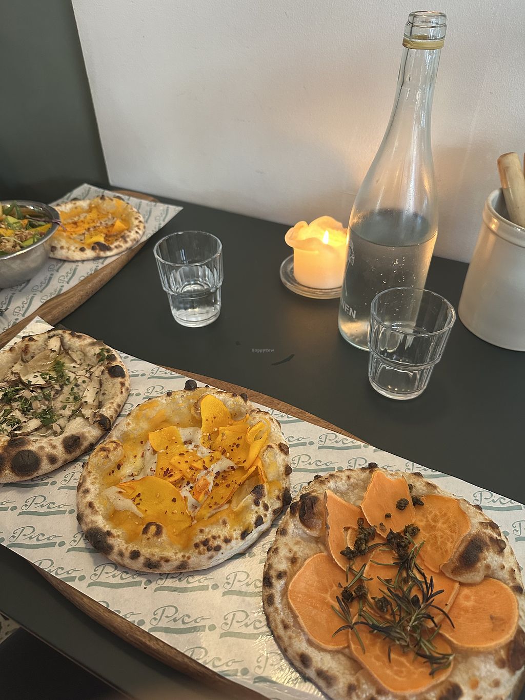 very nice experience, nice to have three pizzas so you can try more, was a bit disappointed at the, what i think was, butter squash that was used as a based on the vegan pizzas wasn't my cup of tea