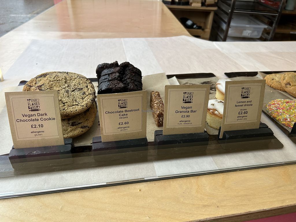 Love the miso nut roast pasty which is a meal in itself, and also the chickpea, sweet potato and spinach pie, and dark chocolate vegan cookie. Sometimes they have vegan croissants. Dog friendly sit in service. Staff are lovely
