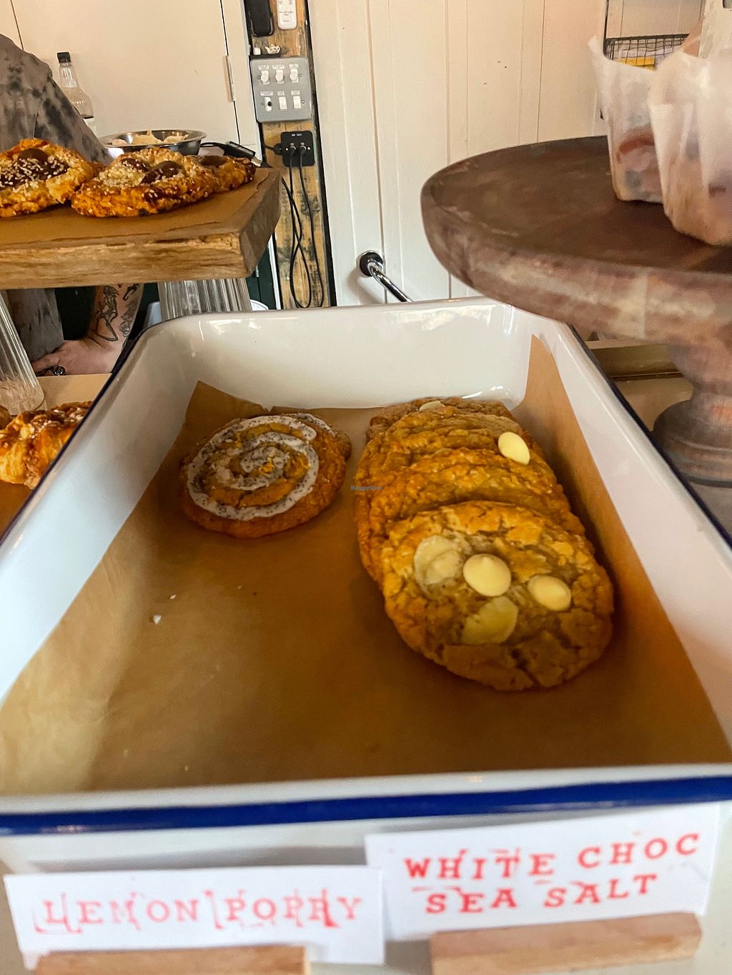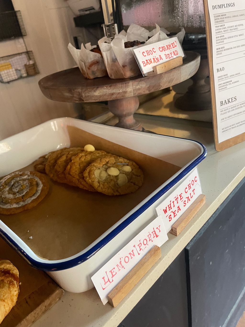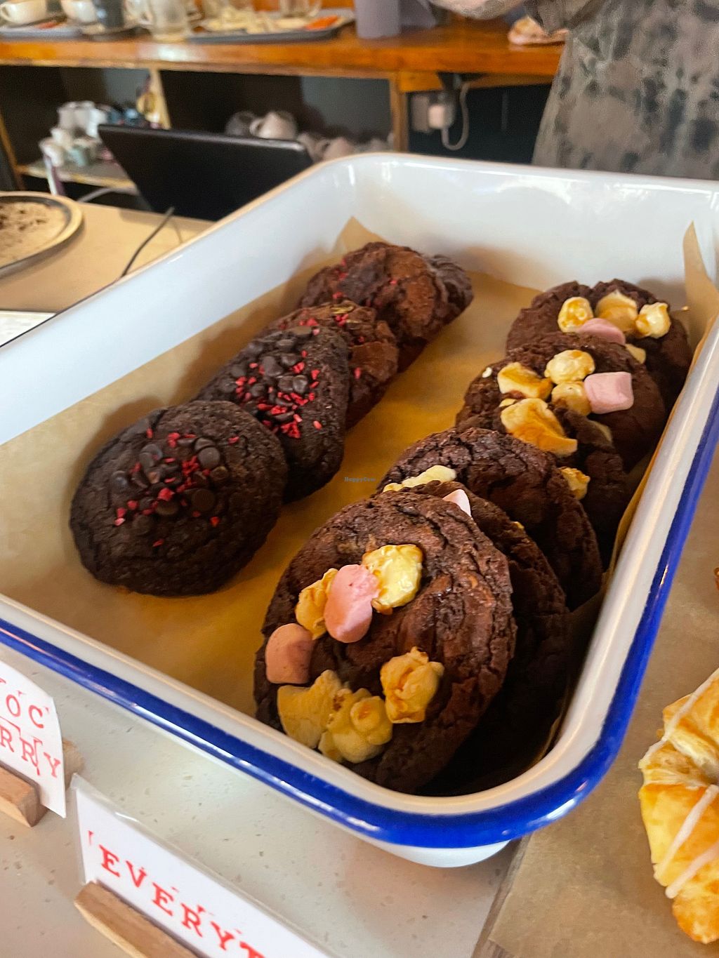All vegan 😍 didn’t taste the food but these cookies looked absolutely amazing. The place looks small from the outside but it’s actually huge inside!