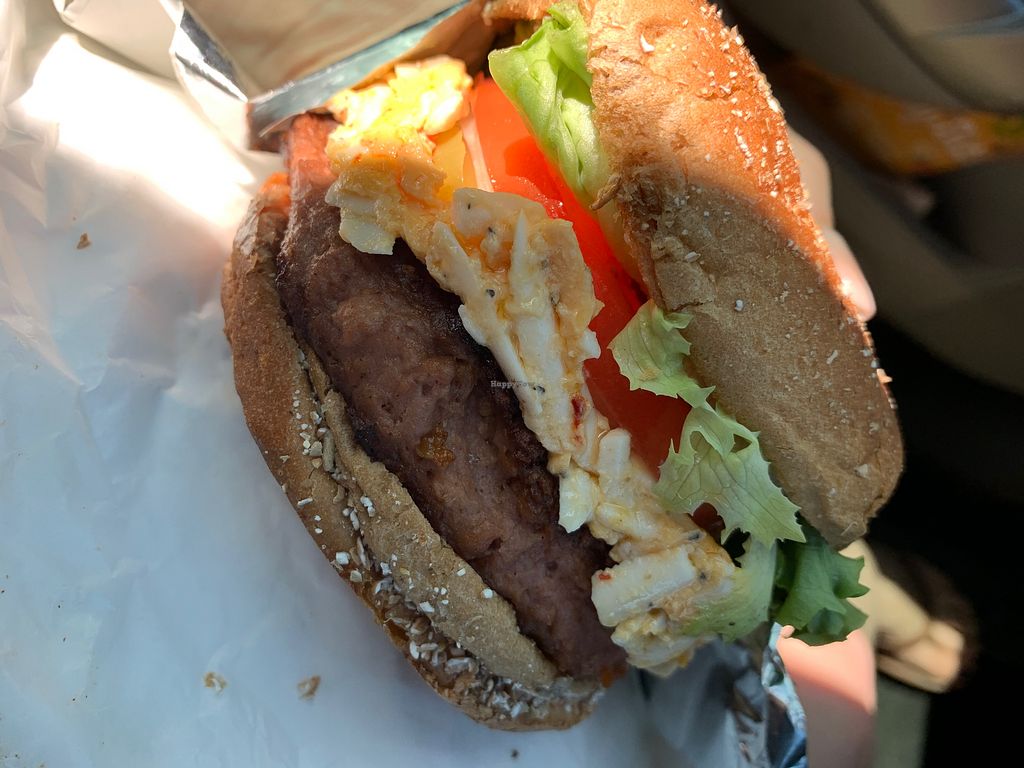 Serves meat, vegan options available. Burger restaurant offering beyond meat burgers, veggie hot dogs, vegan mayo and sides. Open Mon-Sat 11:00am-11:00pm, Sun 11:00am-10:00pm.