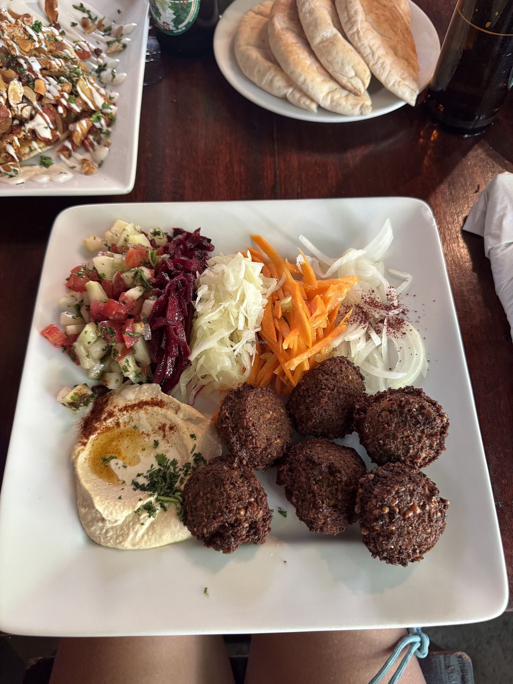 One of my favourite meals in Central America. Had the falafel plate and had to order extra hummus as it was so delicious. Also has a huge menu for omnivores.