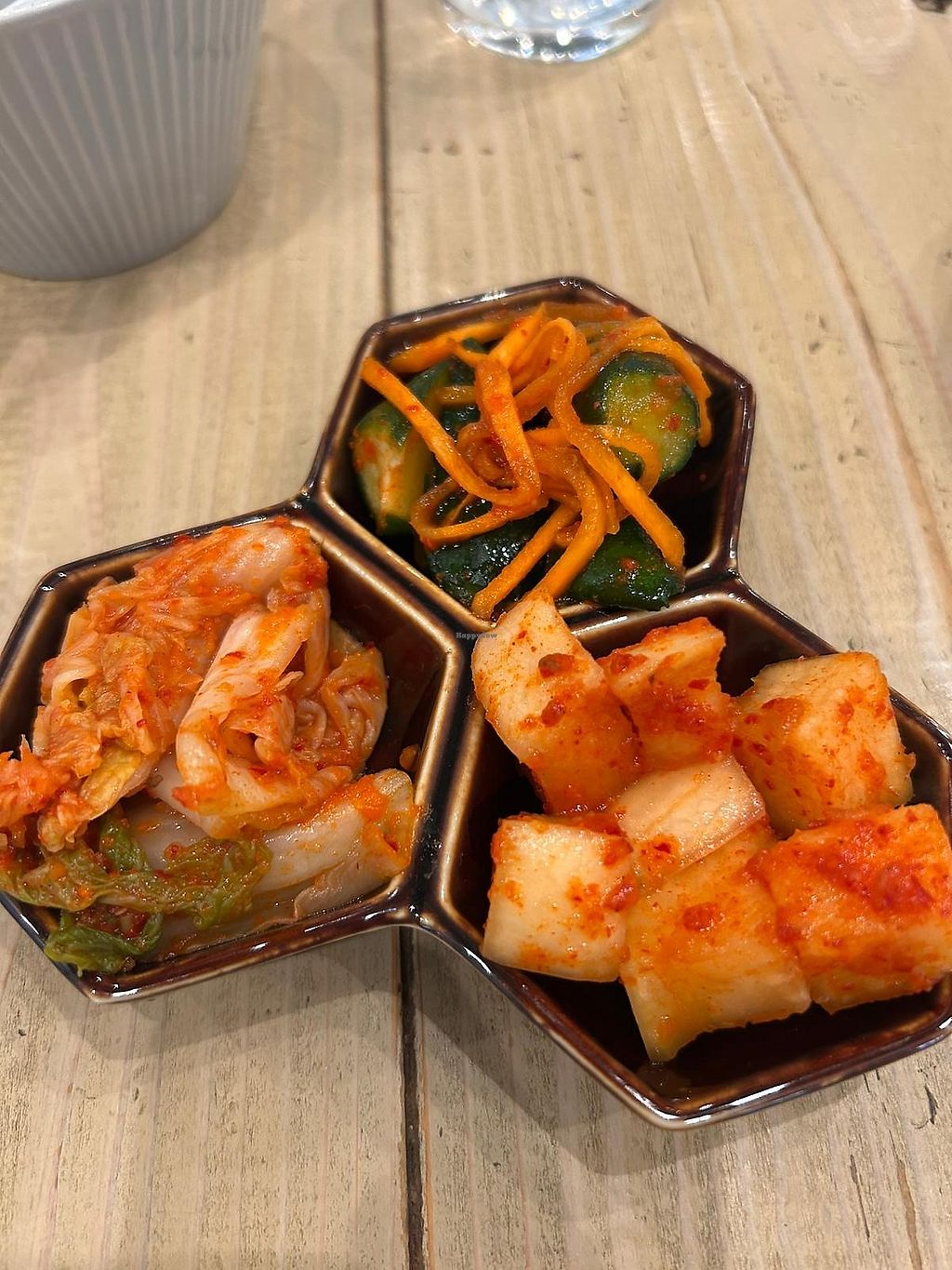 Food was really great, and service was quick. All food and drink is vegan, including vegan versions of local delicacies. A couple things that are worth noting: they don't accept cash, dishes are served when they are ready (ie not at the same time), and its very popular so there was a queue when we came ( 8pm on a thursday). Its deffo worth the wait though!