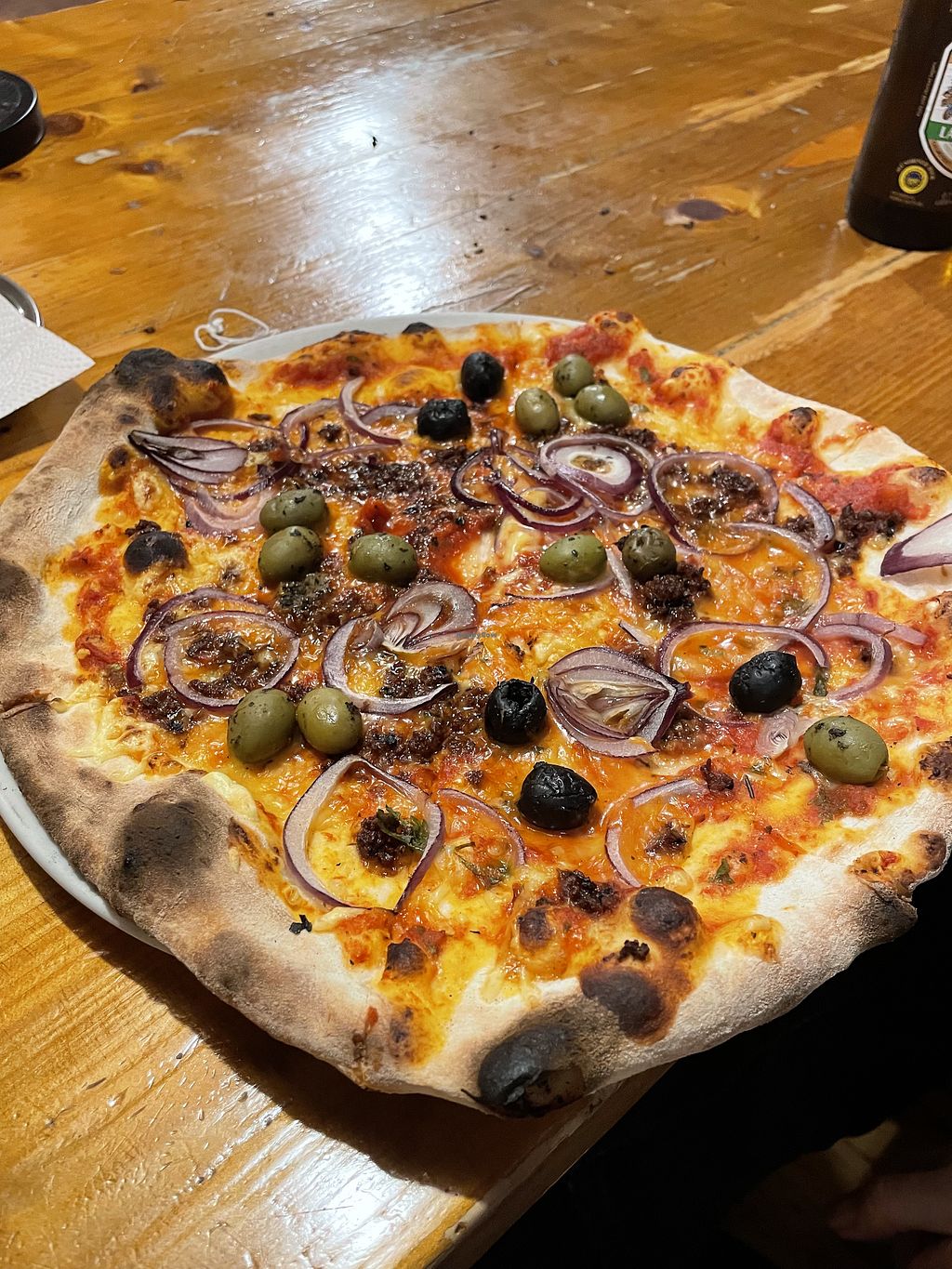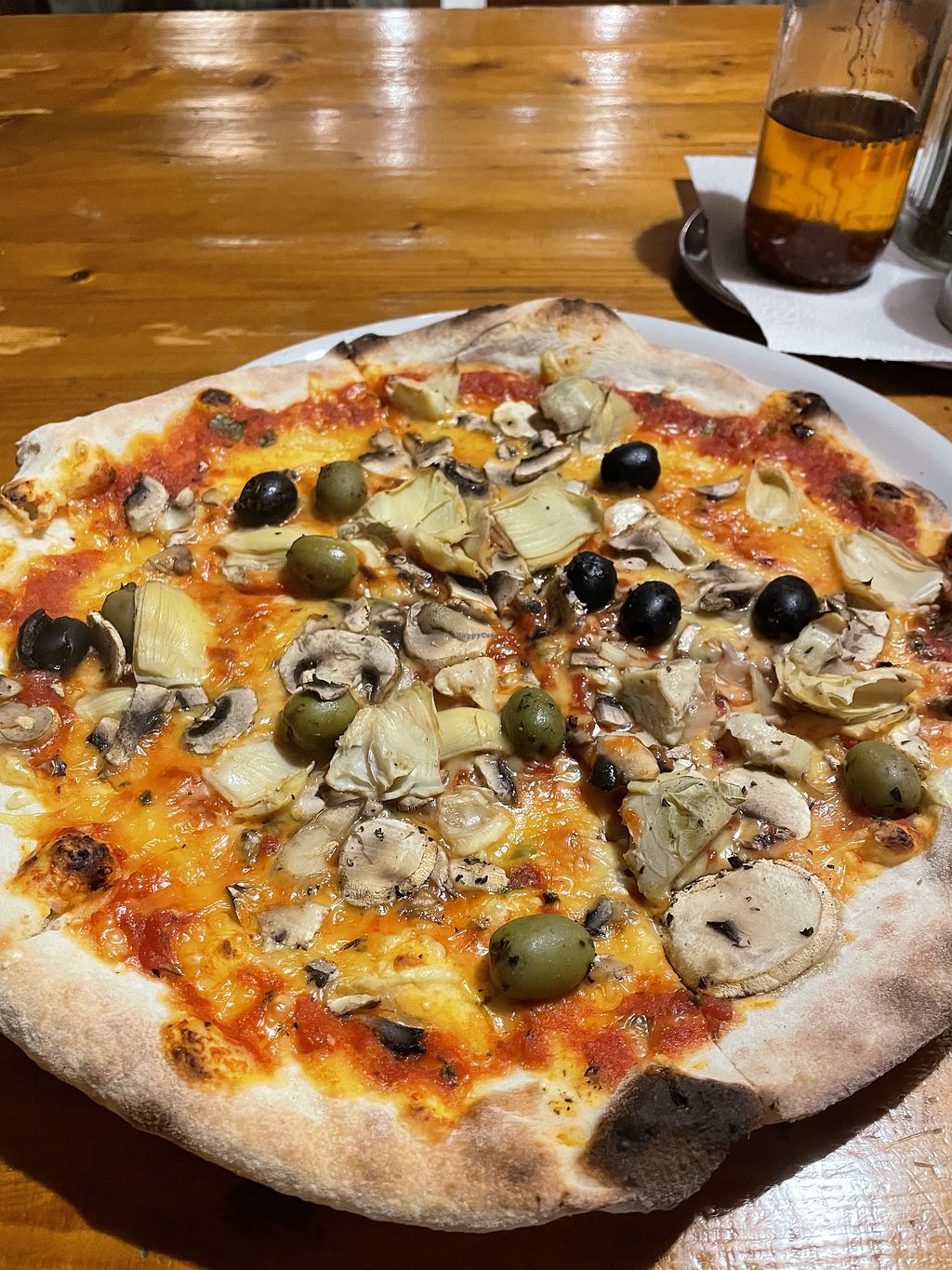 We came here once 6.5 years ago (when my partner was an omnivore and I was newly vegan) and have just finally returned (now both seasoned vegans), and the pizza is at least as good as we remember. There is nothing to fault: the base is thin but supportive, with a good but small crust, and tasty; the toppings (chosen from a large menu) are likewise good quality and full of flavour, and the resultant pizzas are simply wonderful.